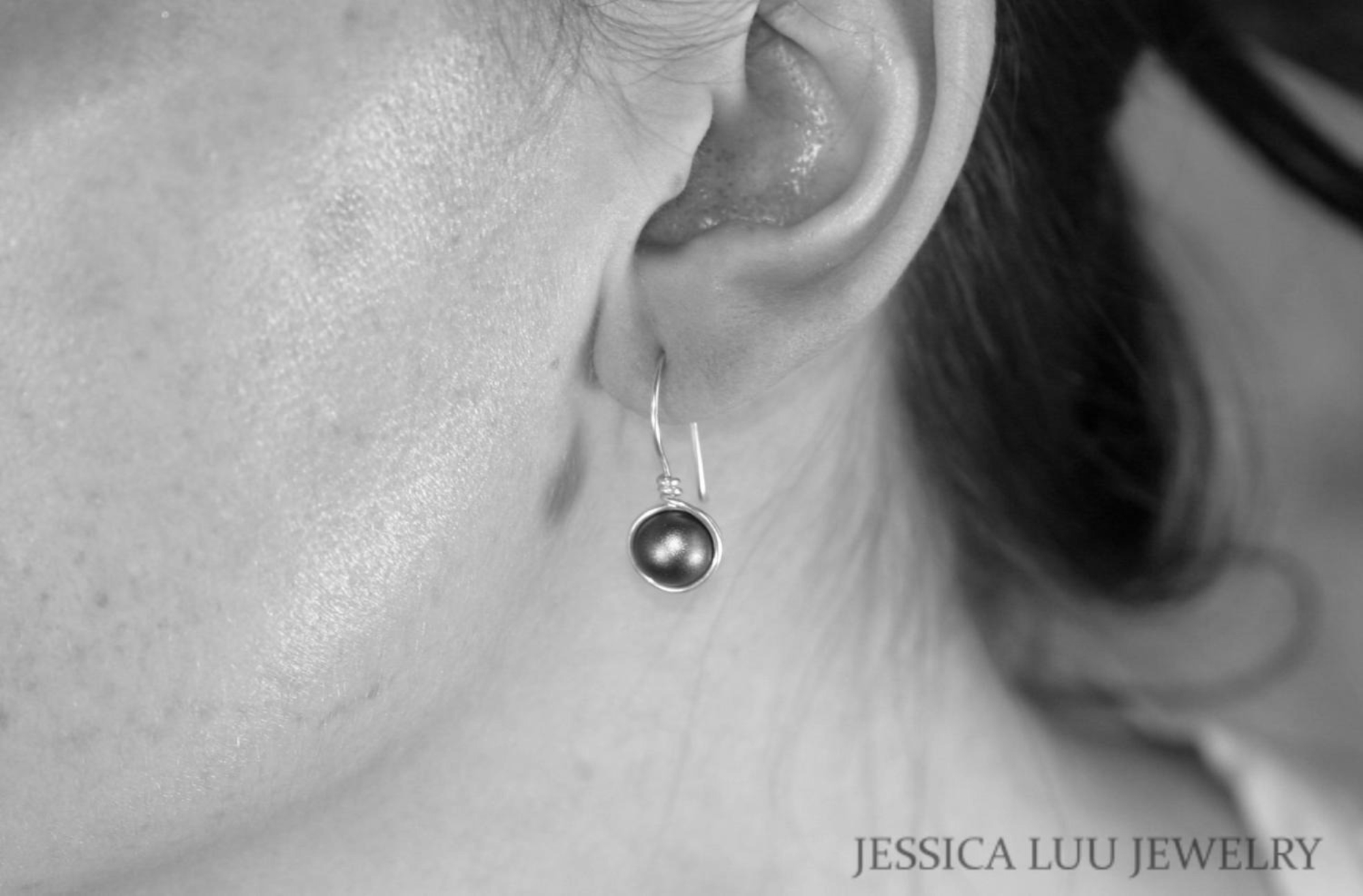 Each pearl is wrapped by hand with Sterling silver or 14K gold filled wire which is then formed into the ear wire and hammered for strength. Gold filled wire is a hollow tube of 14 karat gold that is filled with brass for durability, so all the metal outside is 14K gold; gold filled wire will not wear off like gold plating and will last a lifetime.