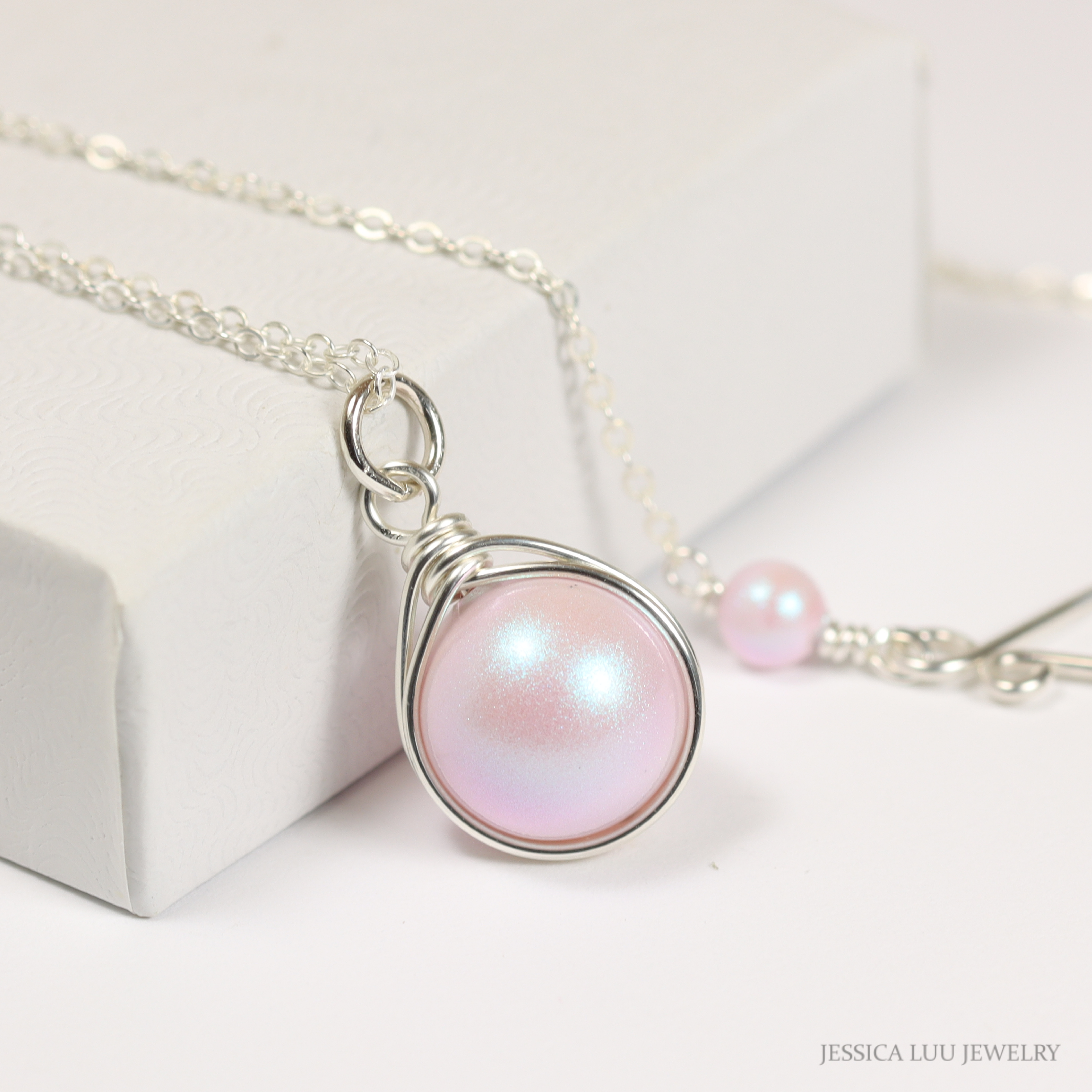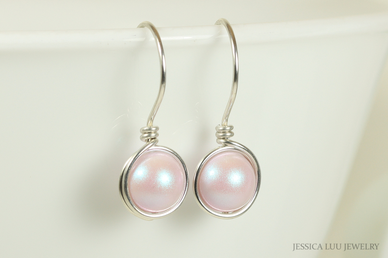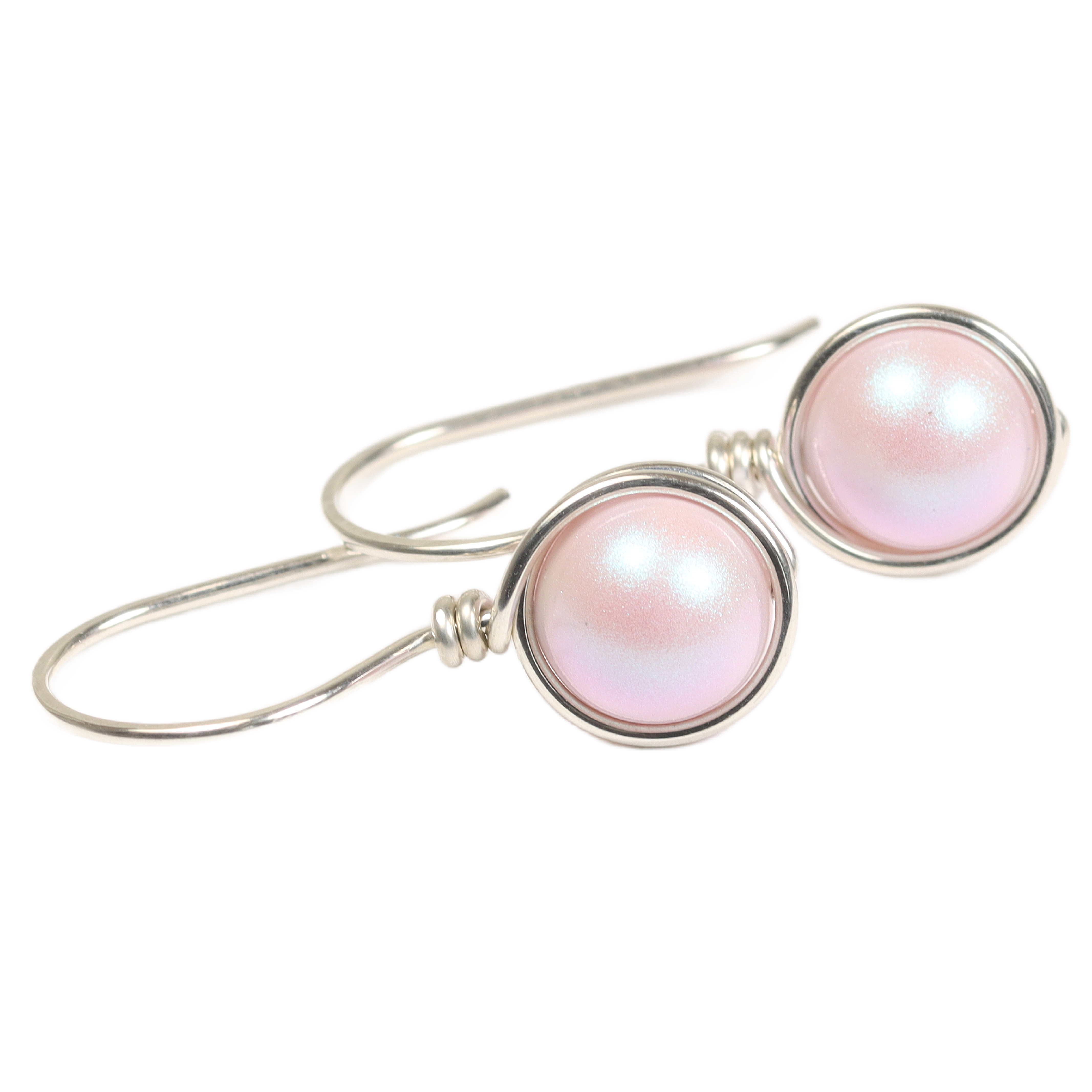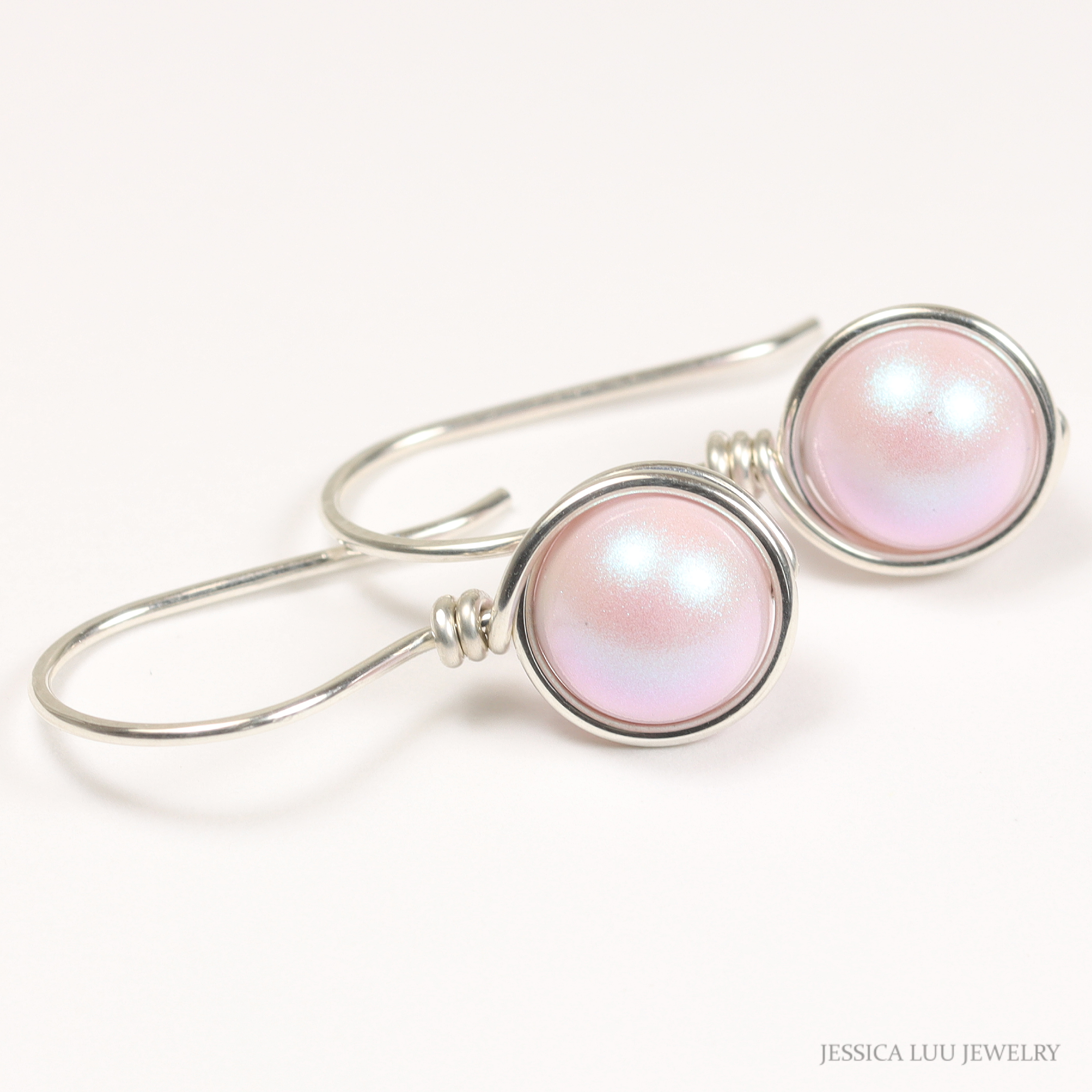These light pink pearls have an iridescent shimmer that glints in the light - available with matching necklace in 3 metal choices.