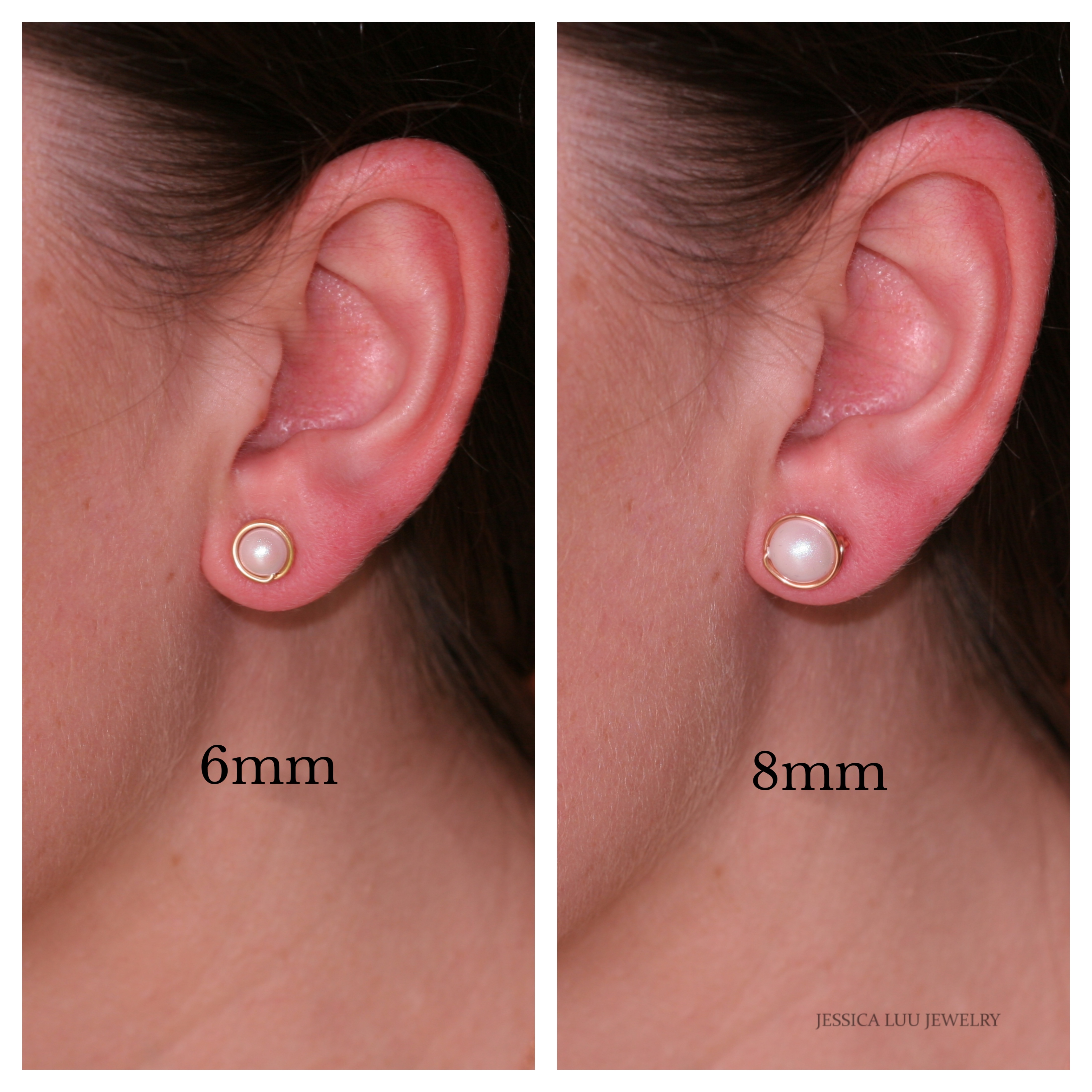 HOW THEY’RE MADE: Each pearl is wrapped by hand with 14K gold filled wire which is then formed into the ear post. Gold filled wire is a hollow tube of 14 karat gold that is filled with brass for durability, so all the metal outside is 14K gold; gold filled wire will not wear off like gold plating and will last a lifetime.