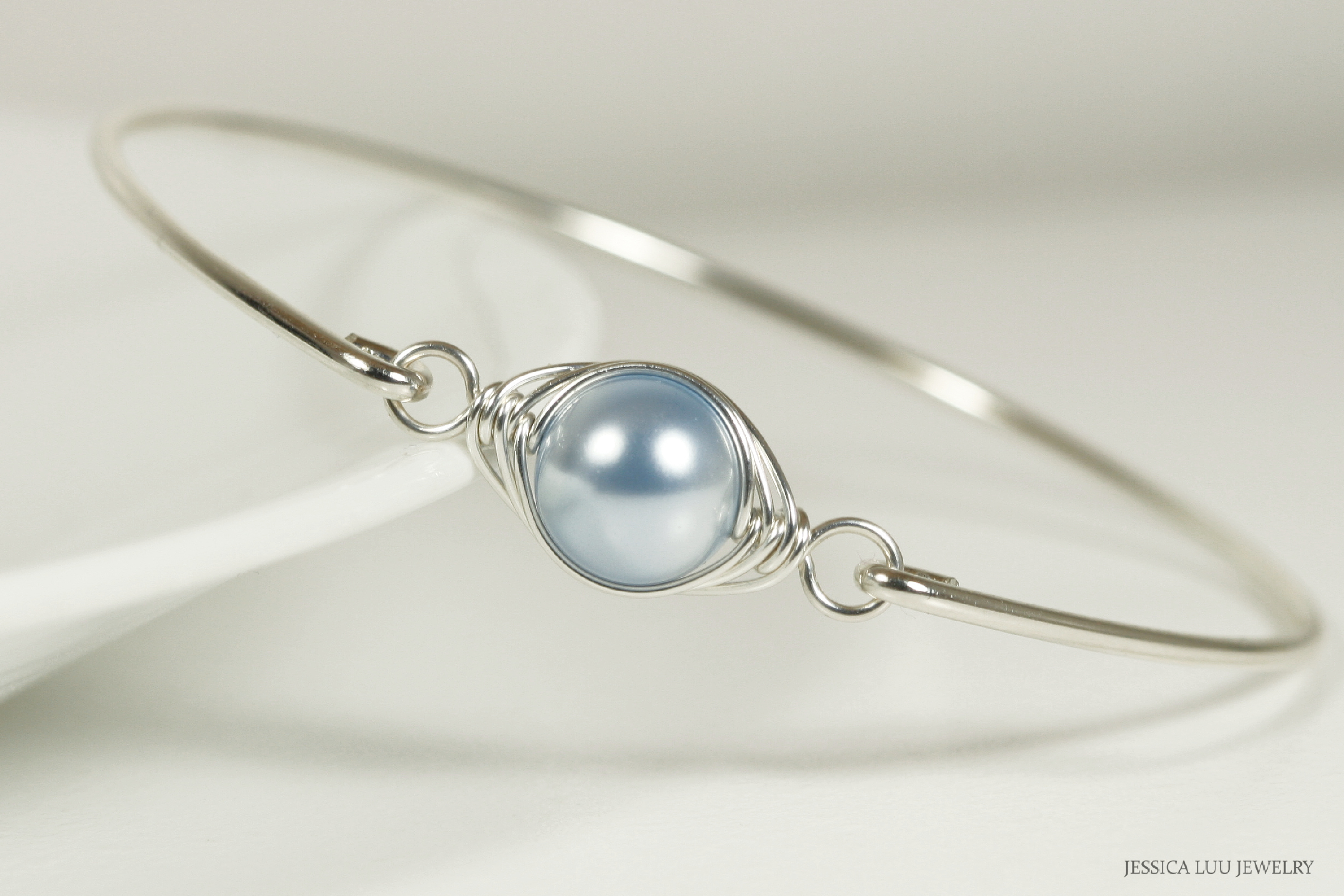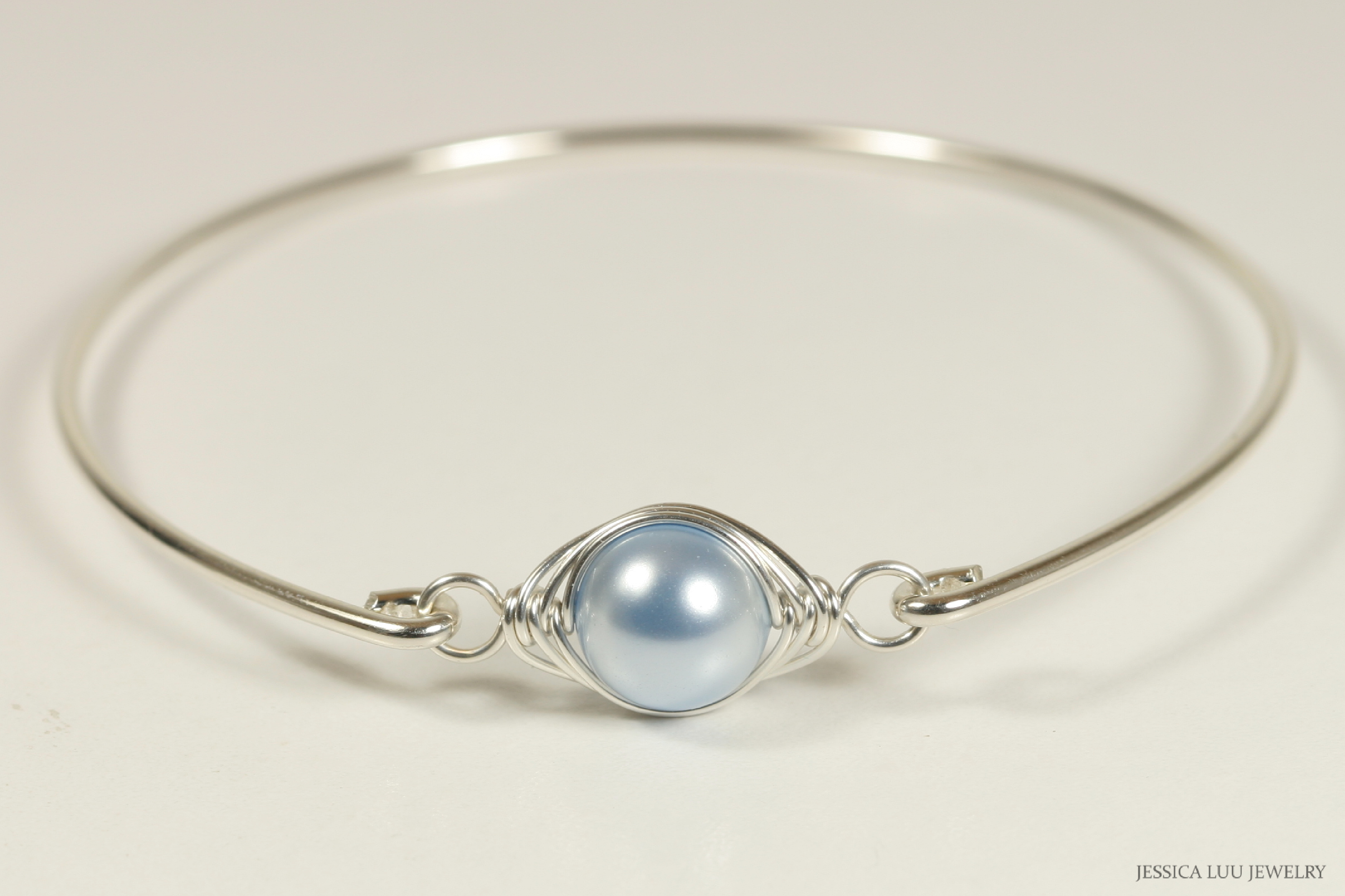Light Blue Pearl Bangle Handmade by Jessica Luu Jewelry