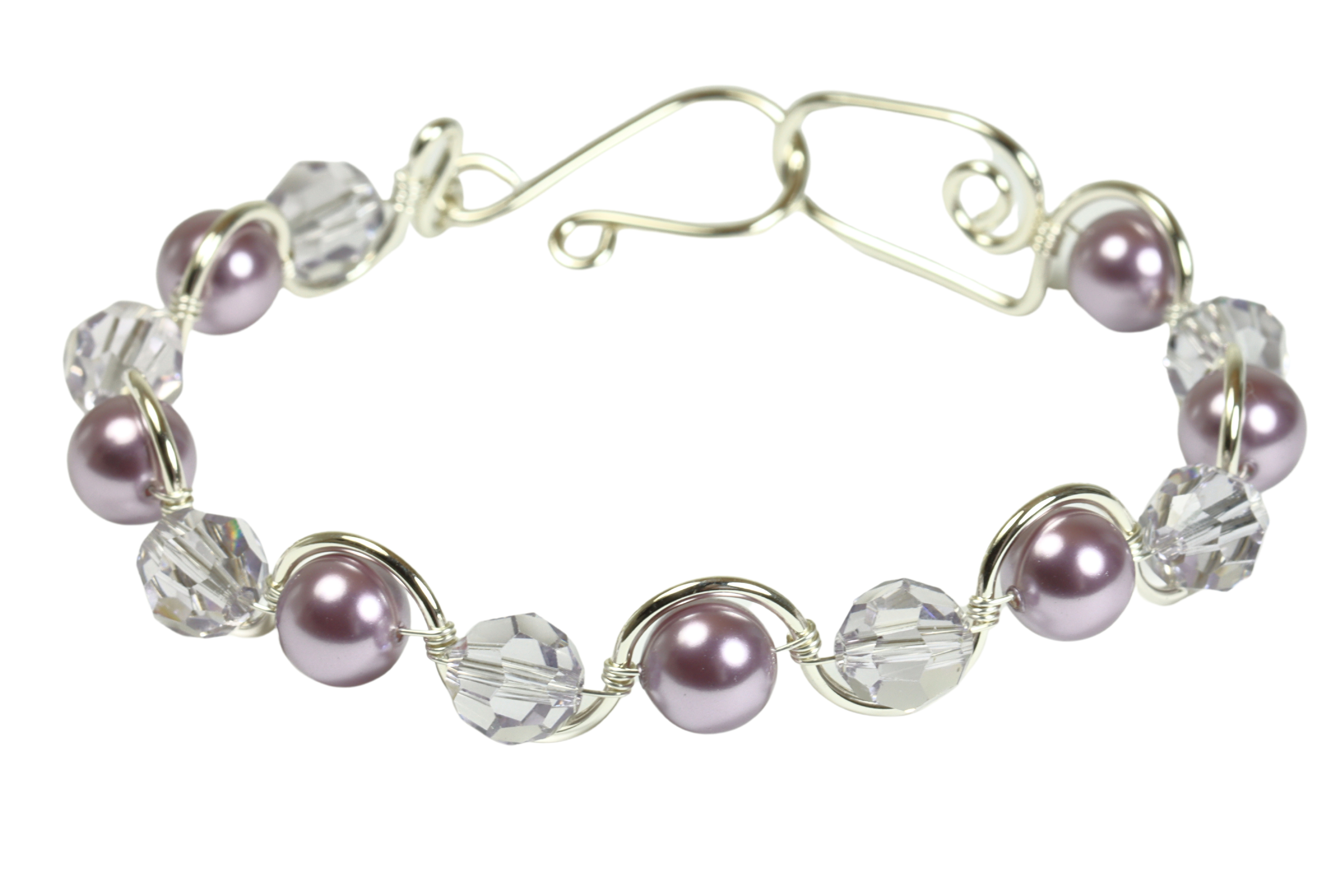Wire Wrapped Mauve Pearl and Crystal Bracelet Handmade by Jessica Luu Jewelry