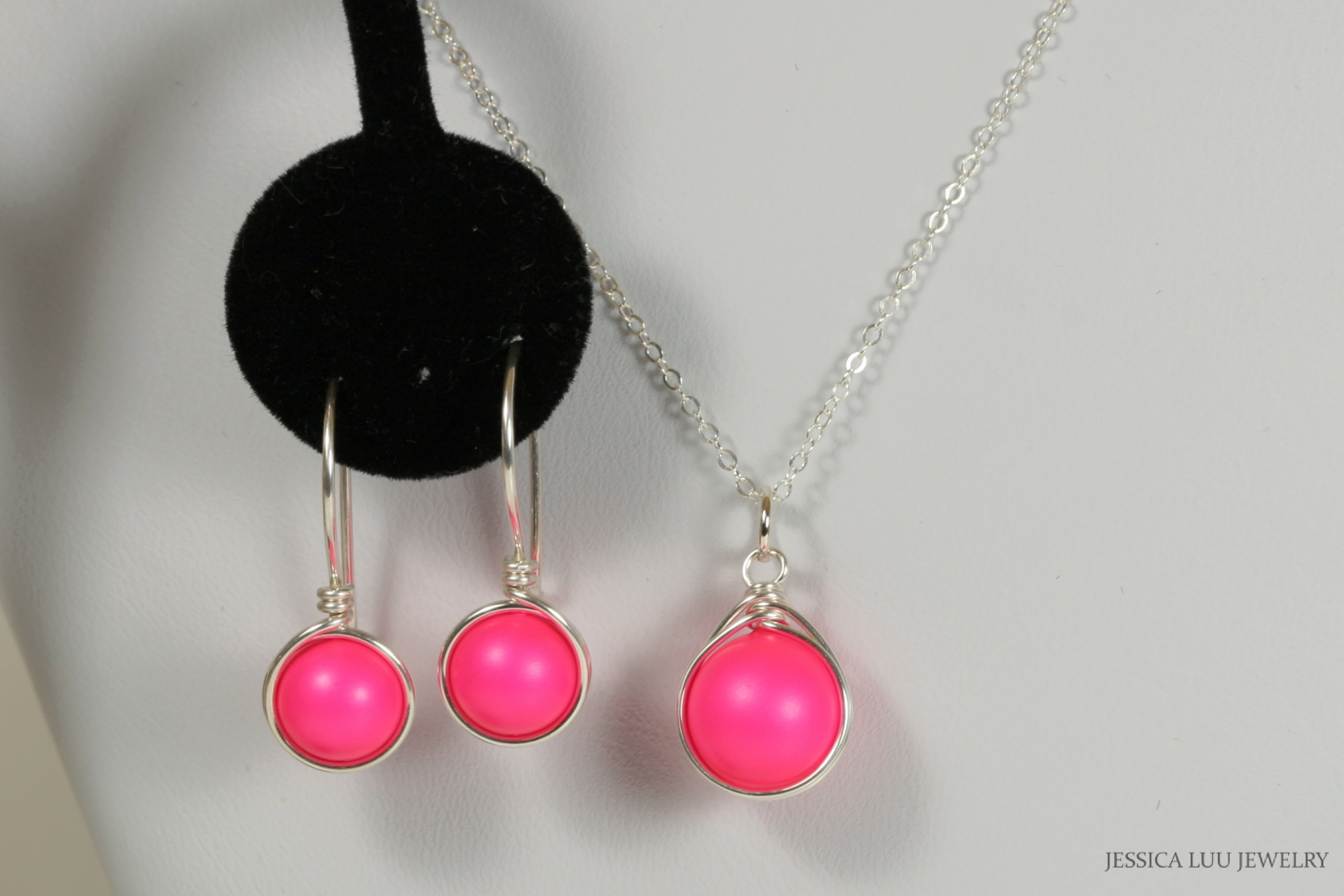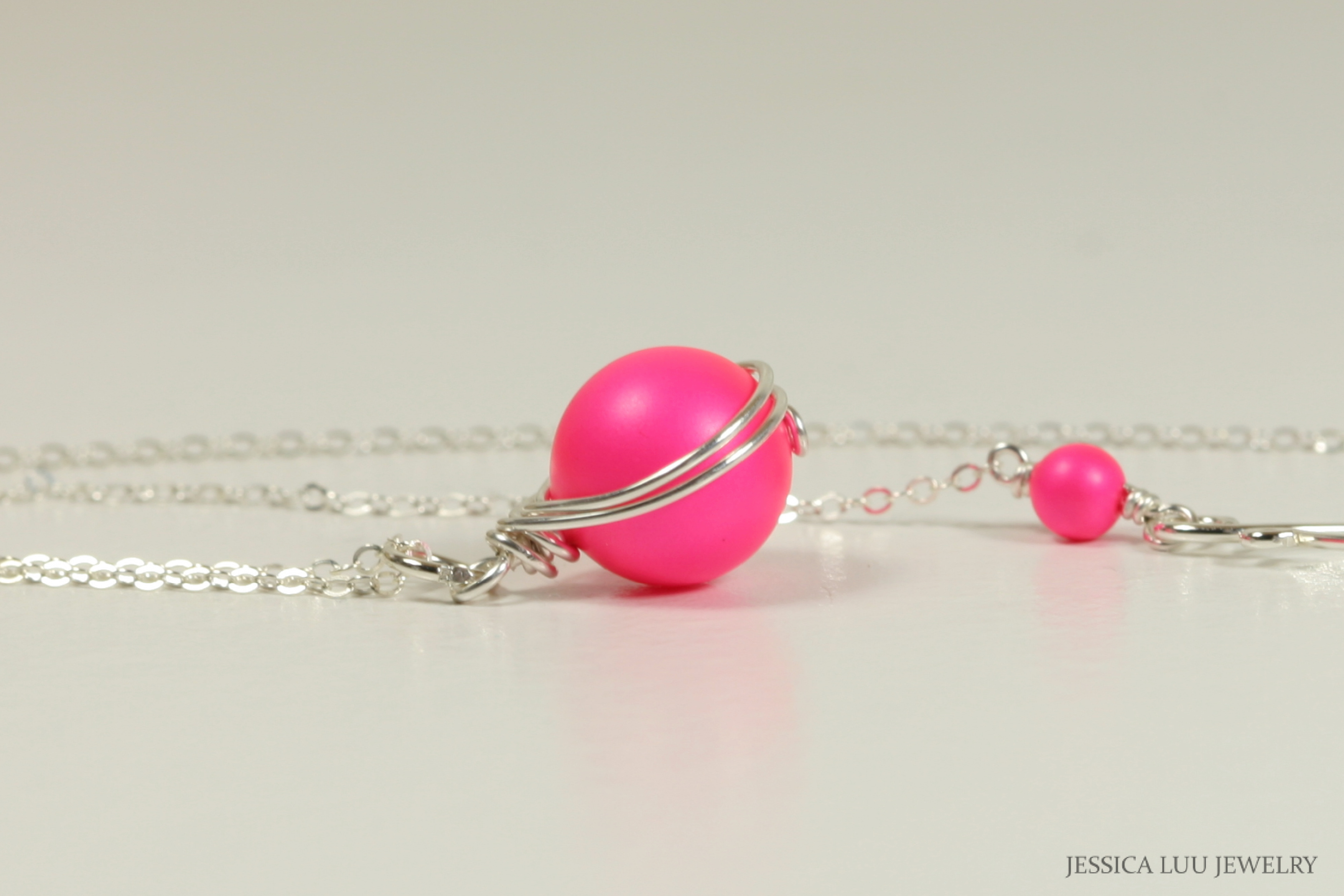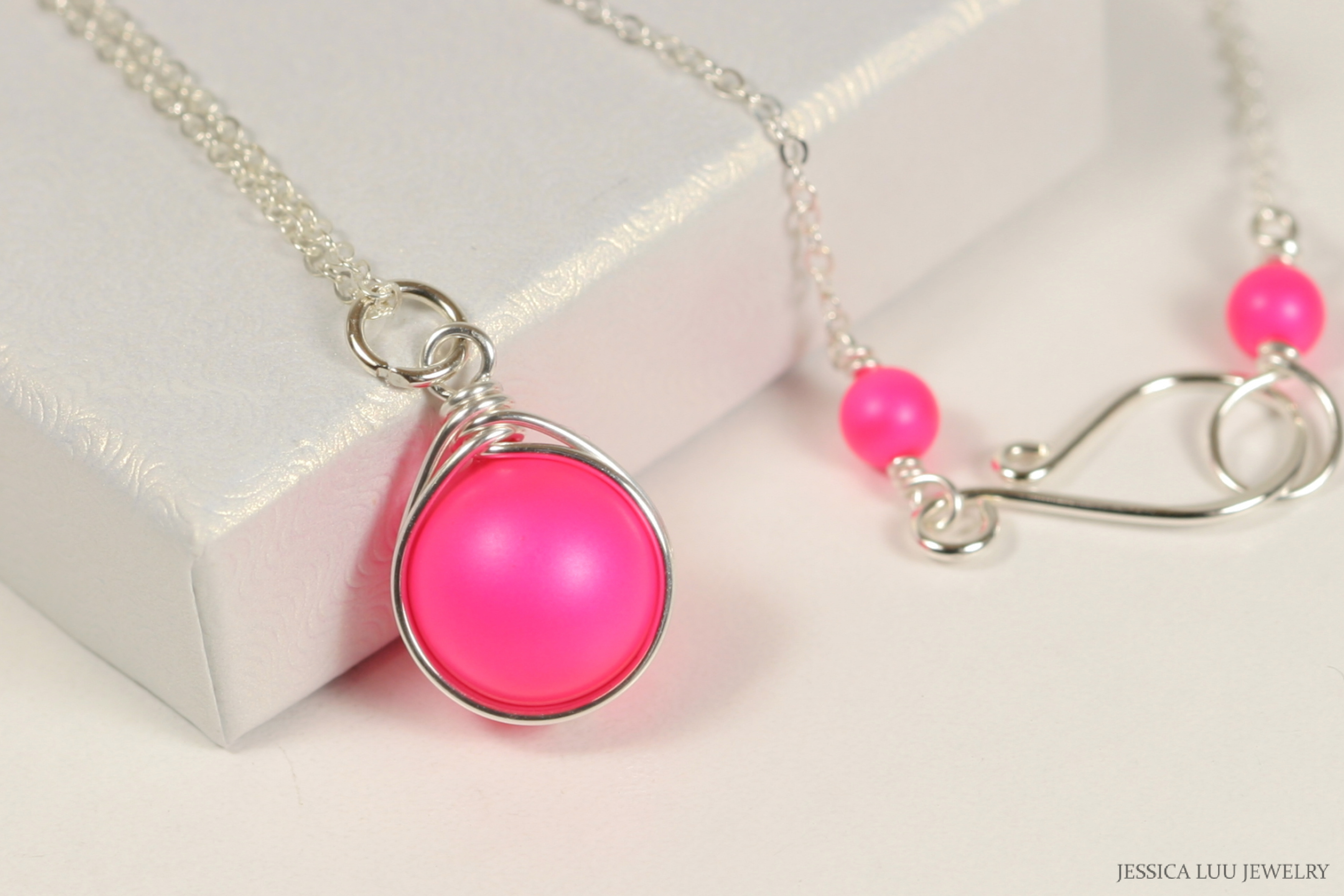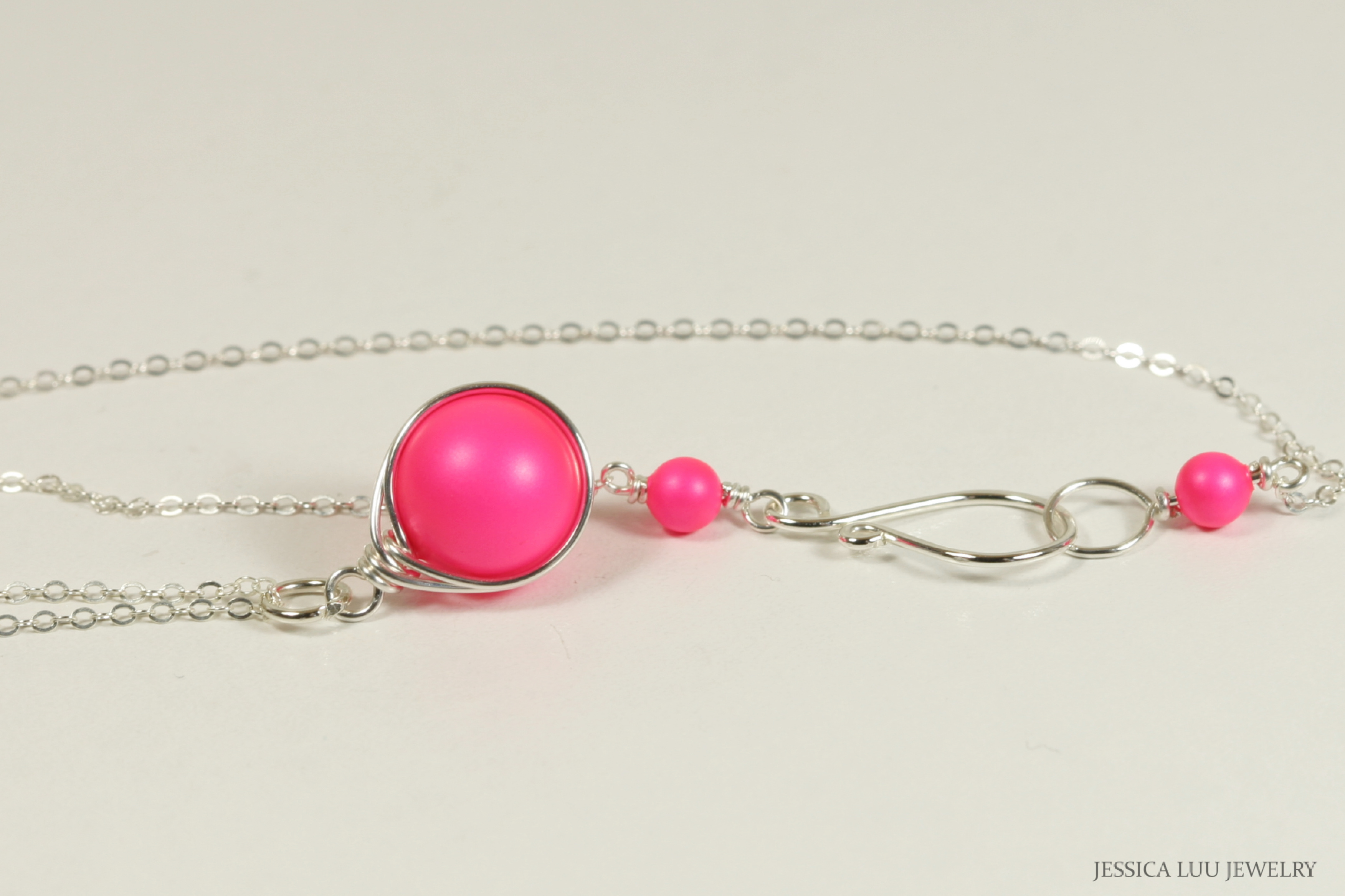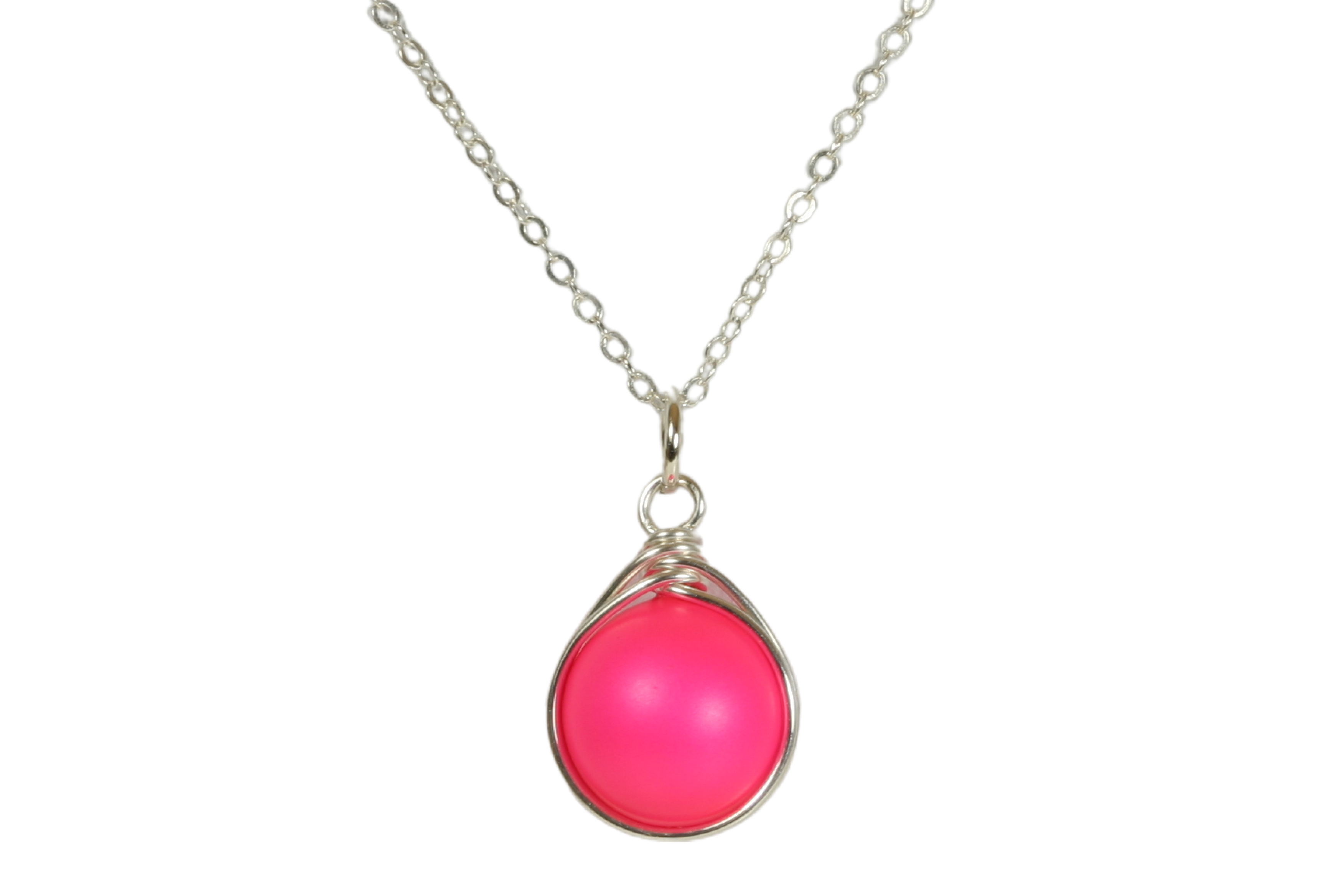 Wire Wrapped Neon Pink Necklace Handmade by Jessica Luu Jewelry