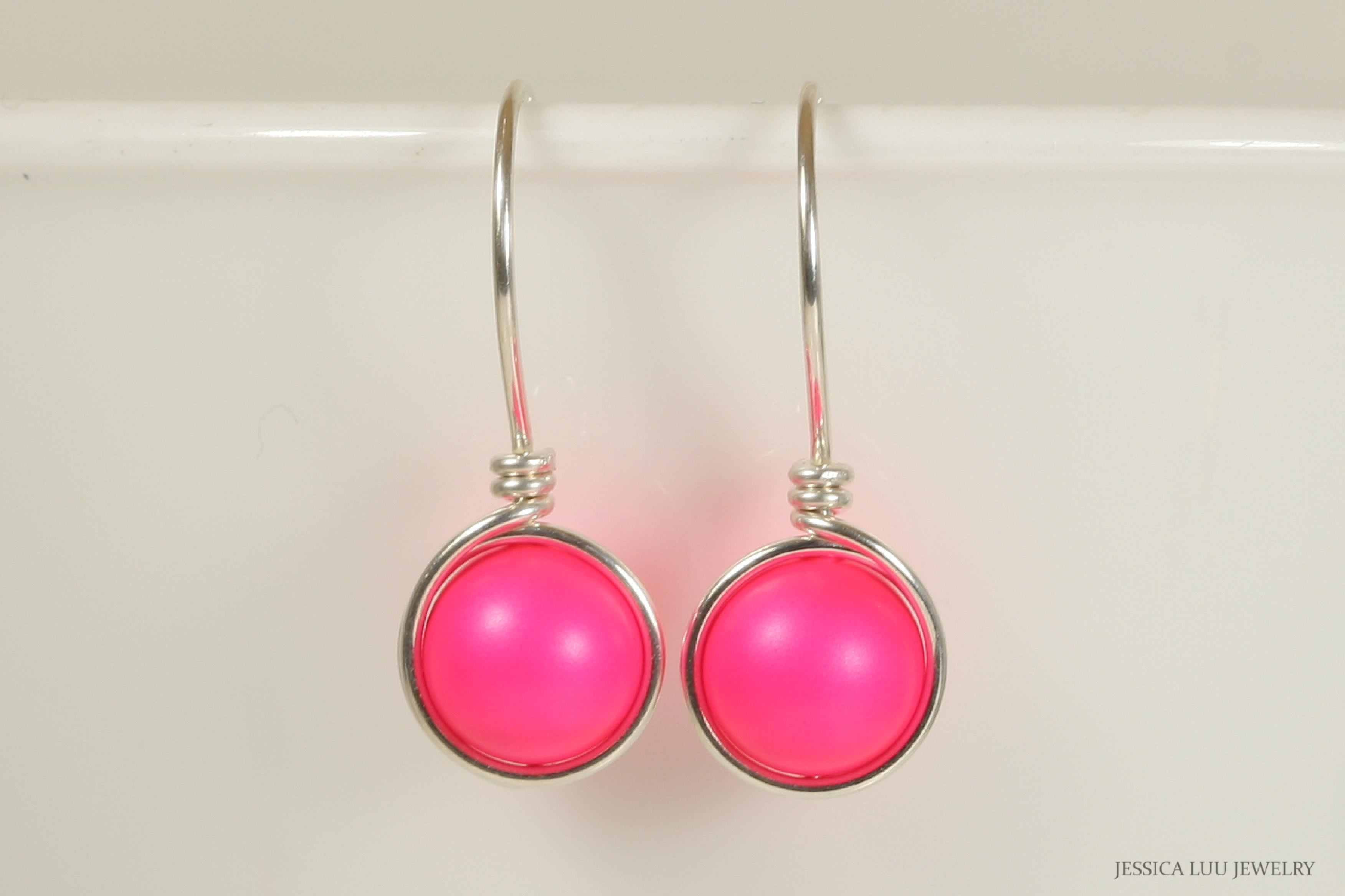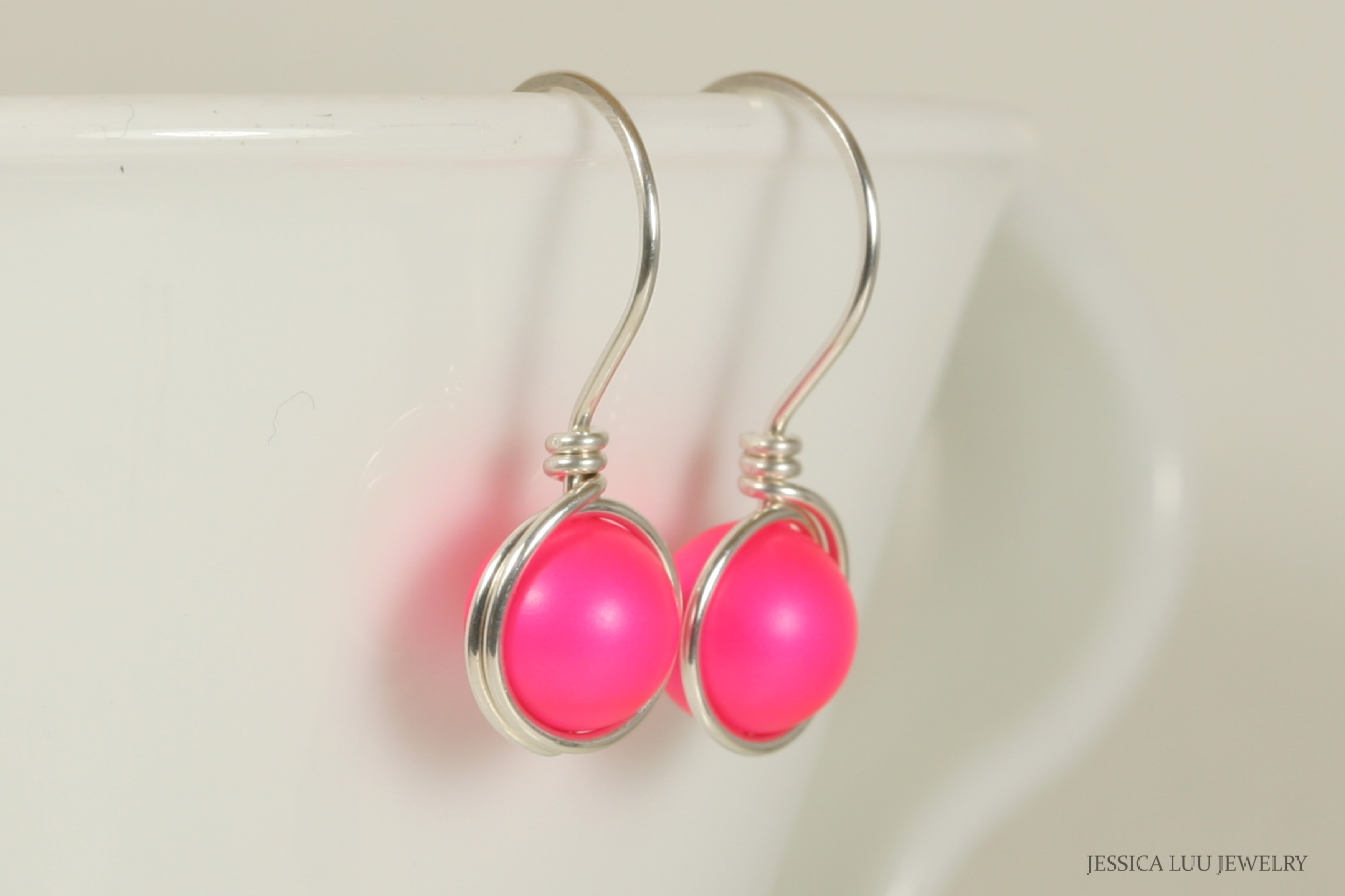 Neon Pink Earrings Handmade by Jessica Luu Jewelry
