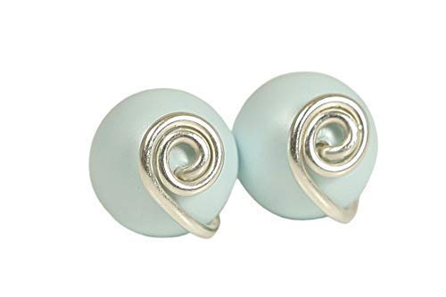 Wire Wrapped Pastel Blue Pearl Stud Earrings Handmade by Jessica Luu Jewelry