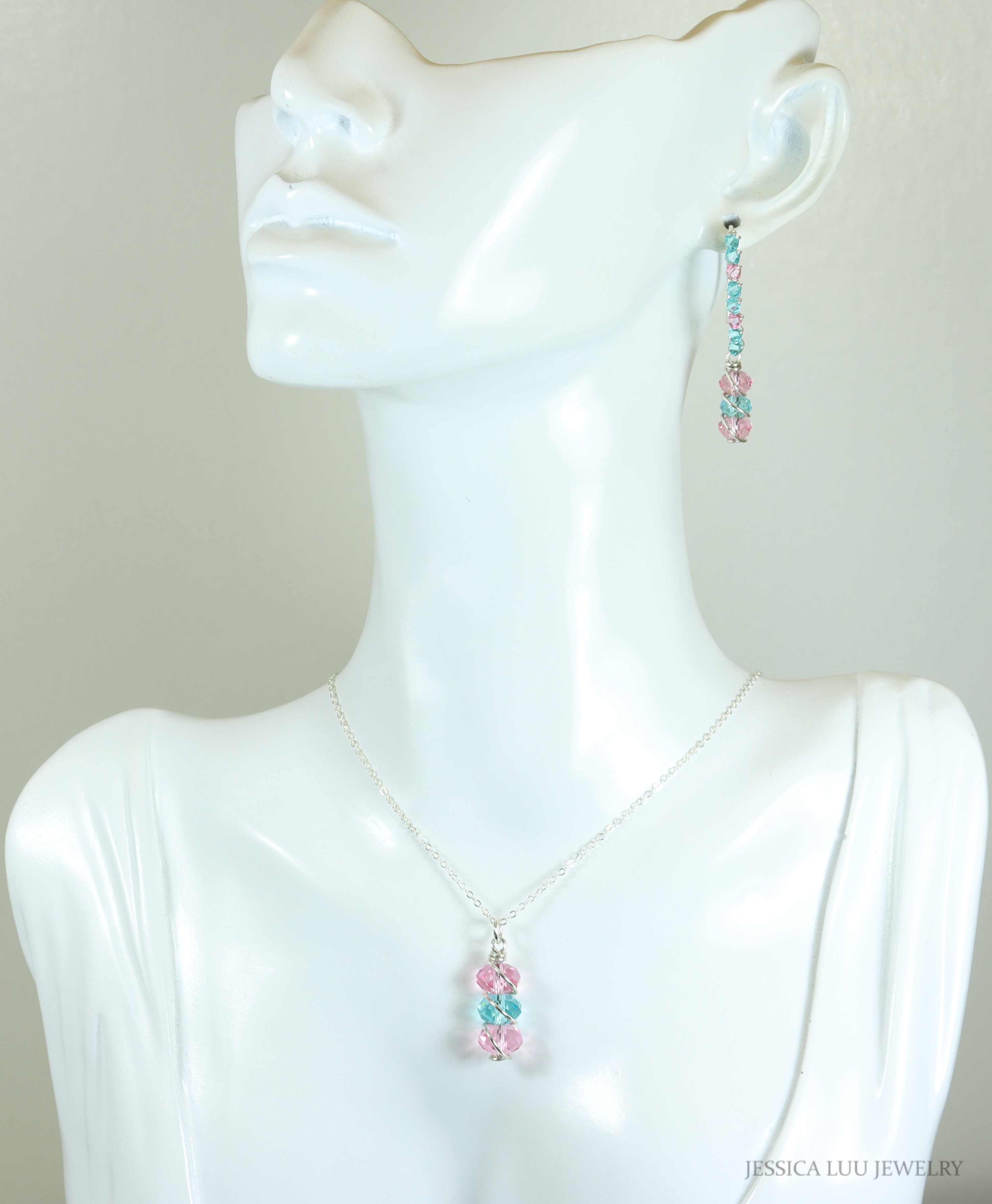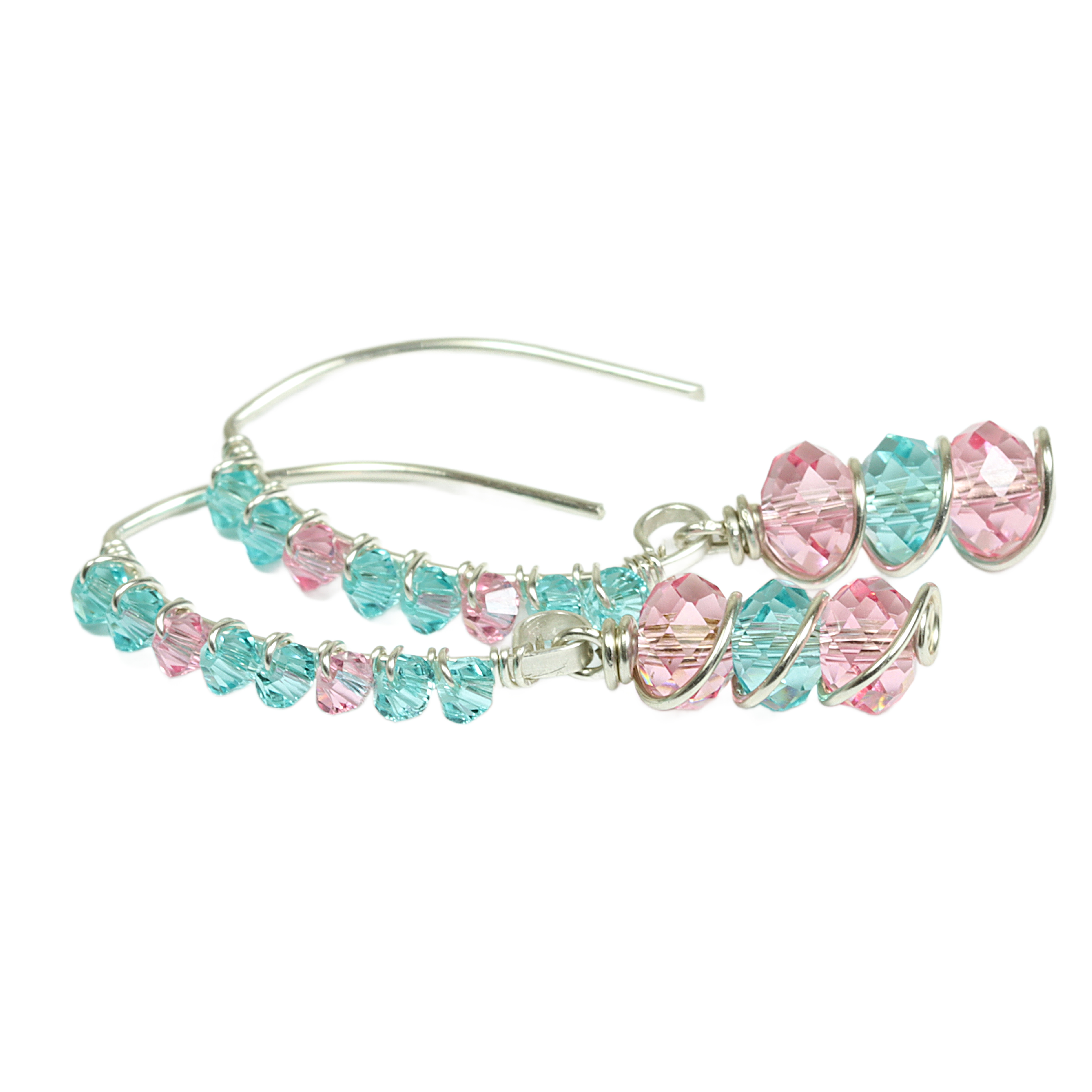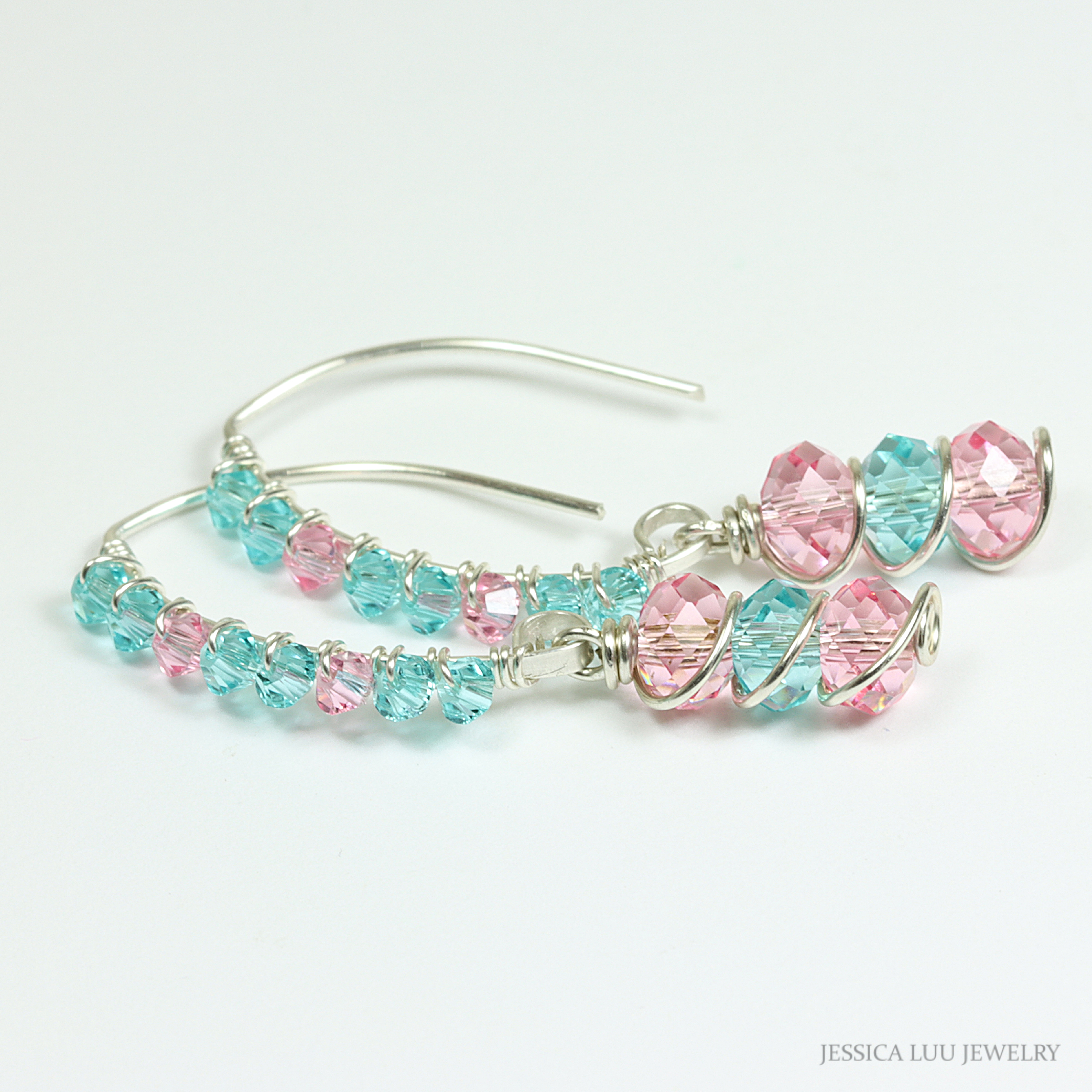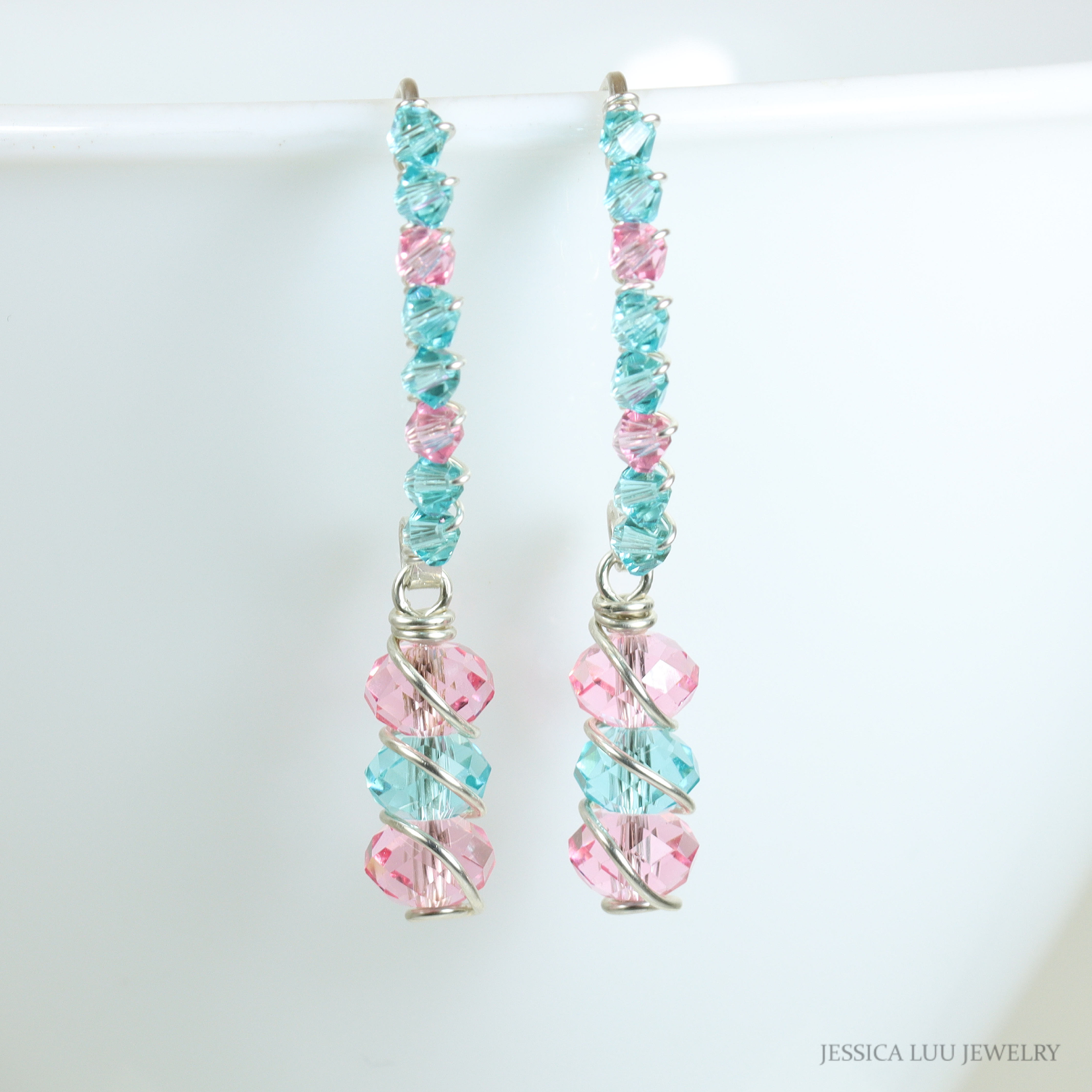 Sterling Silver Pink and Blue Earrings Handmade by Jessica Luu Jewelry