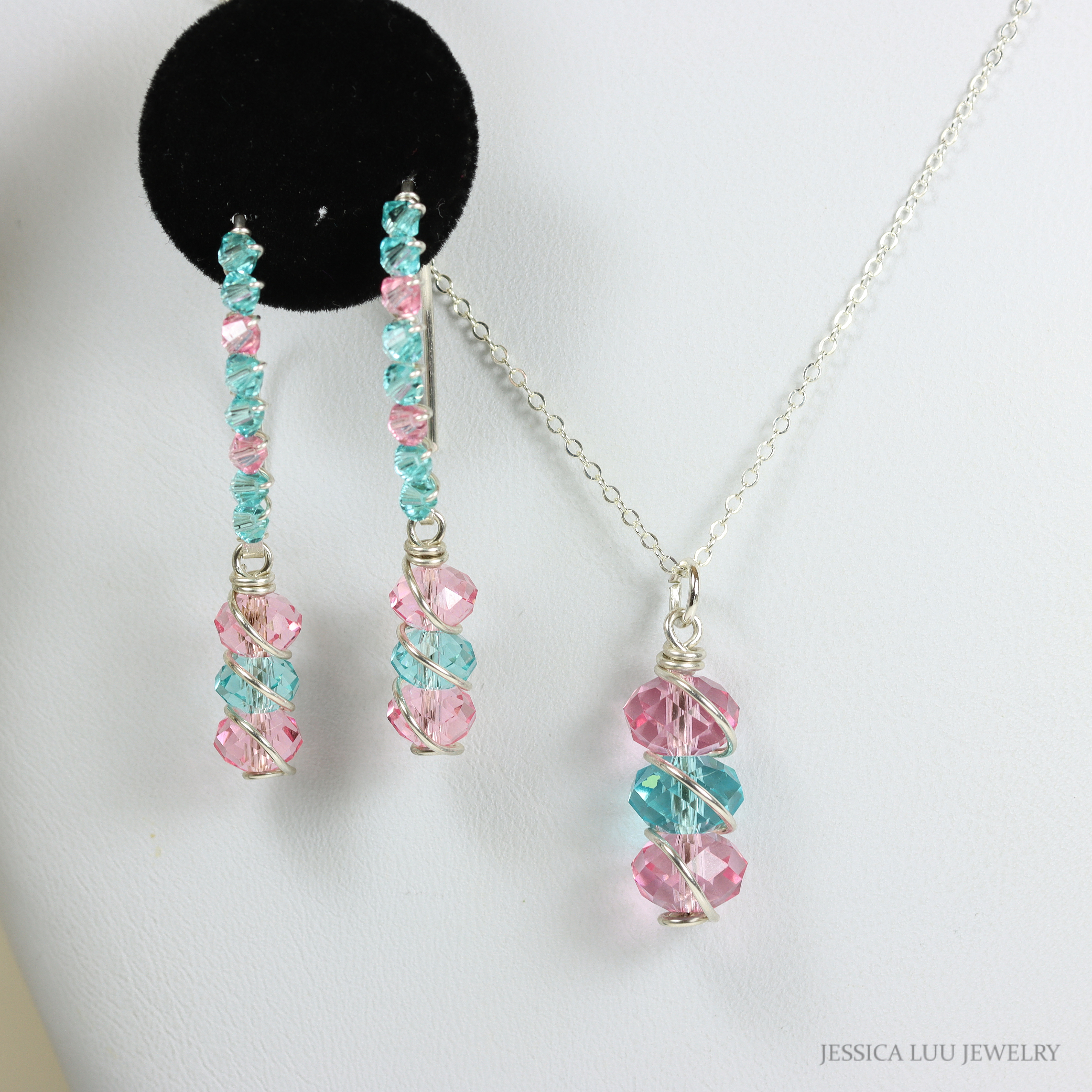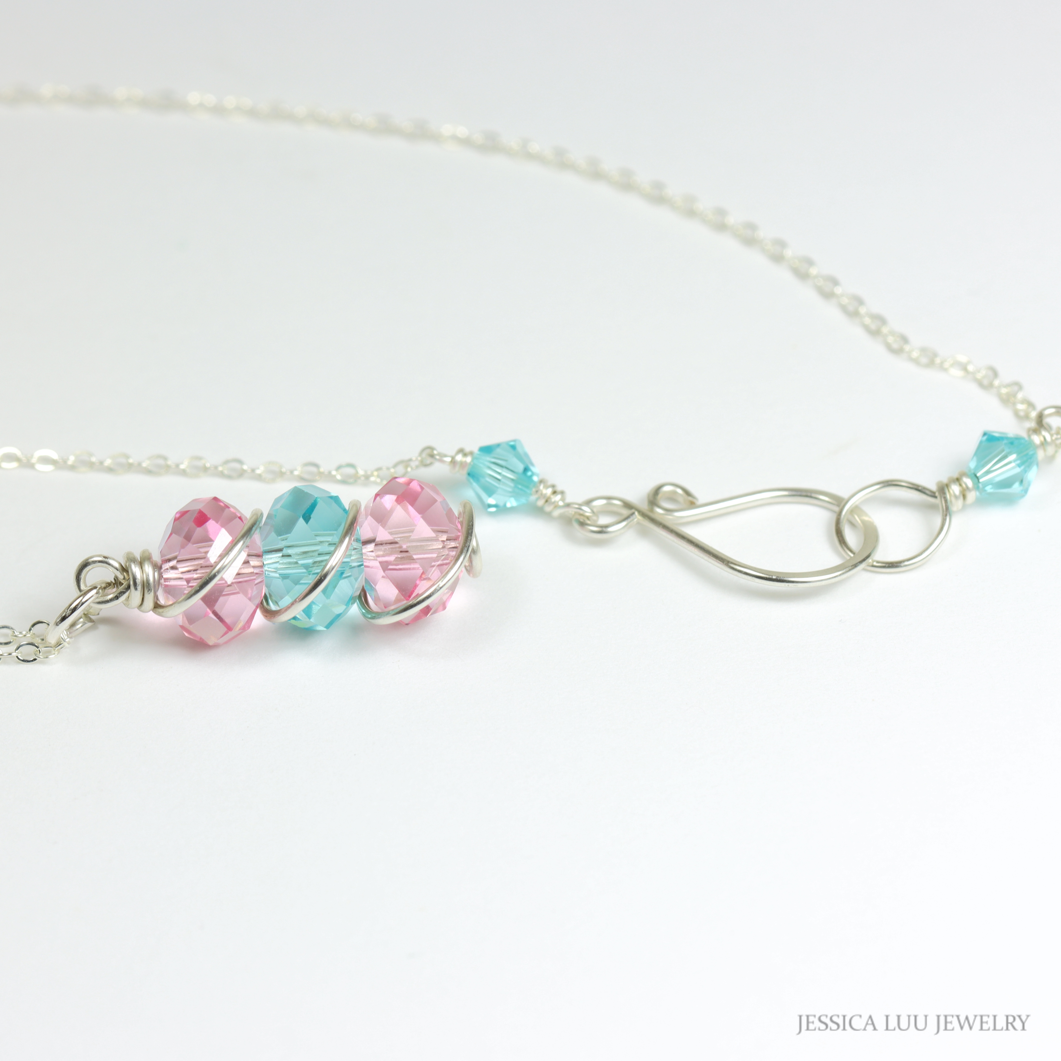 Pink and Blue Necklace Handmade by Jessica Luu Jewelry