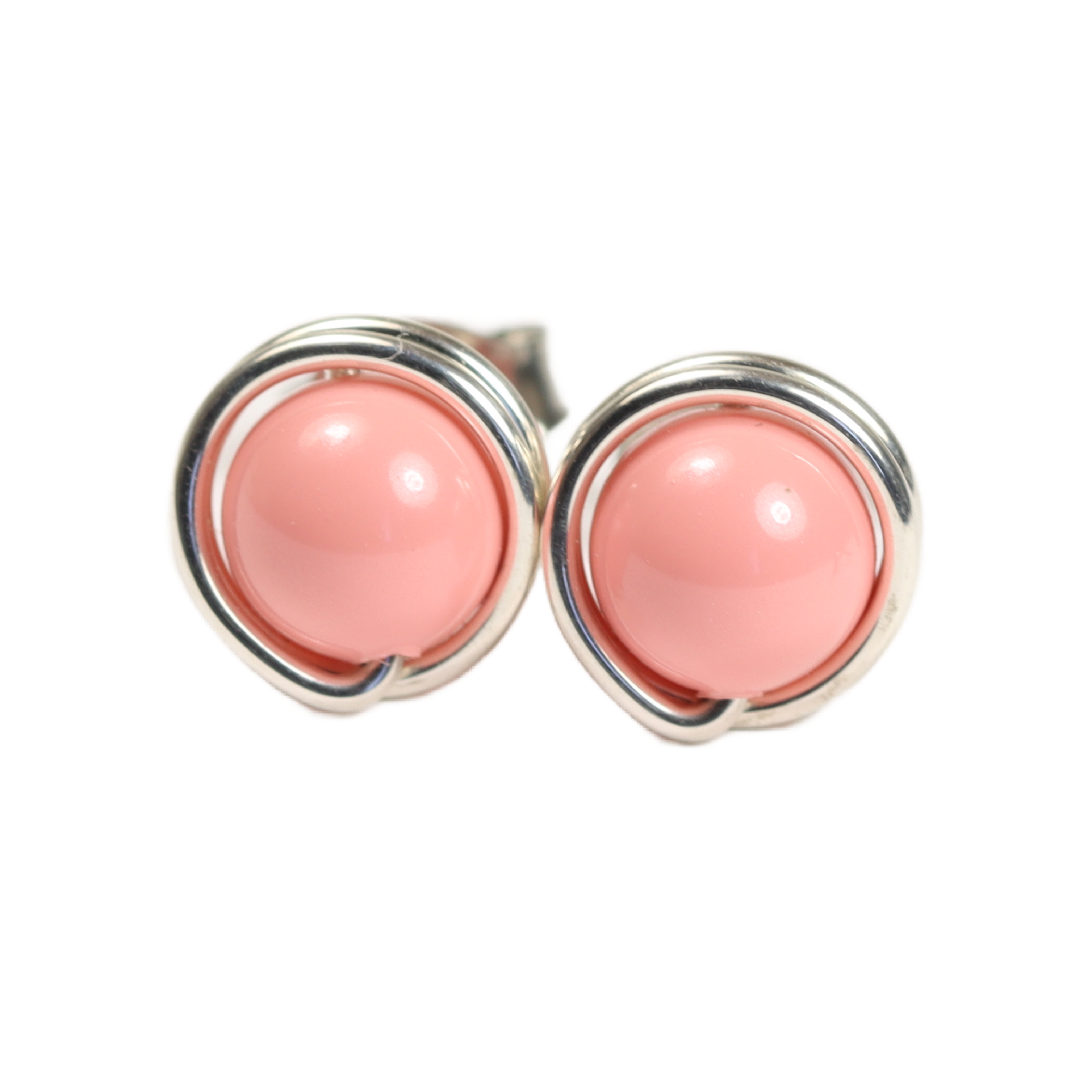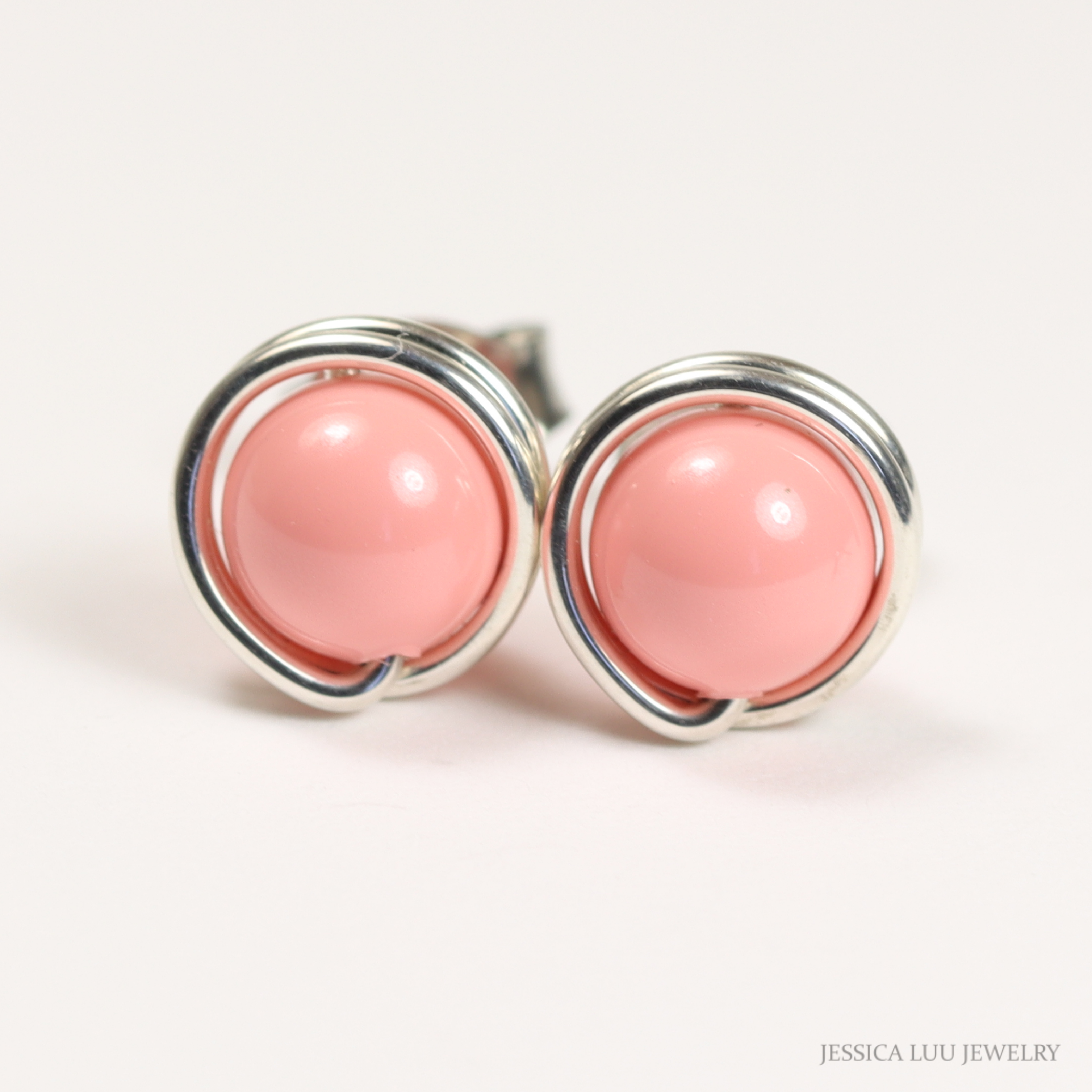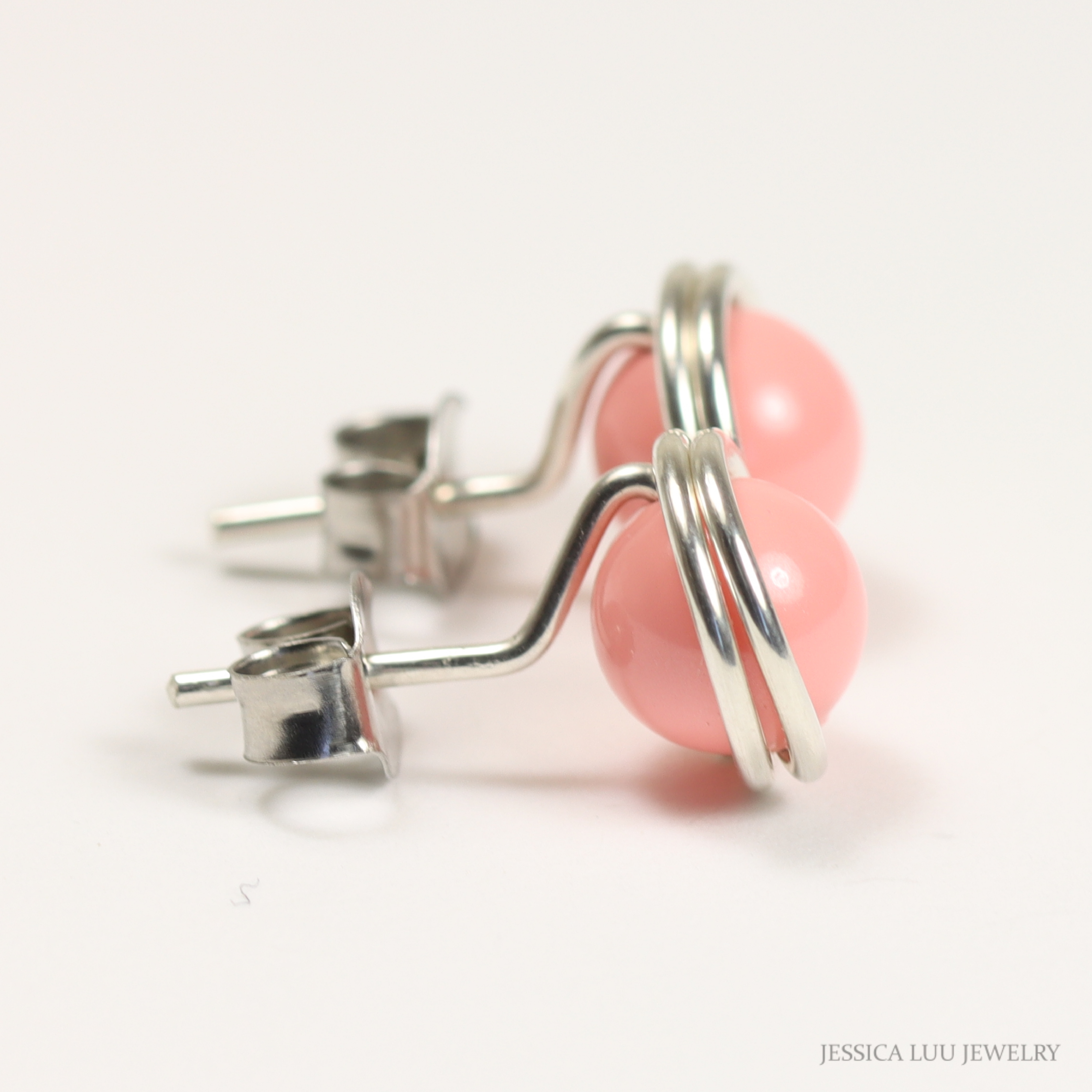 Sterling Silver Pink Coral Pearl Earrings Handmade by Jessica Luu Jewelry