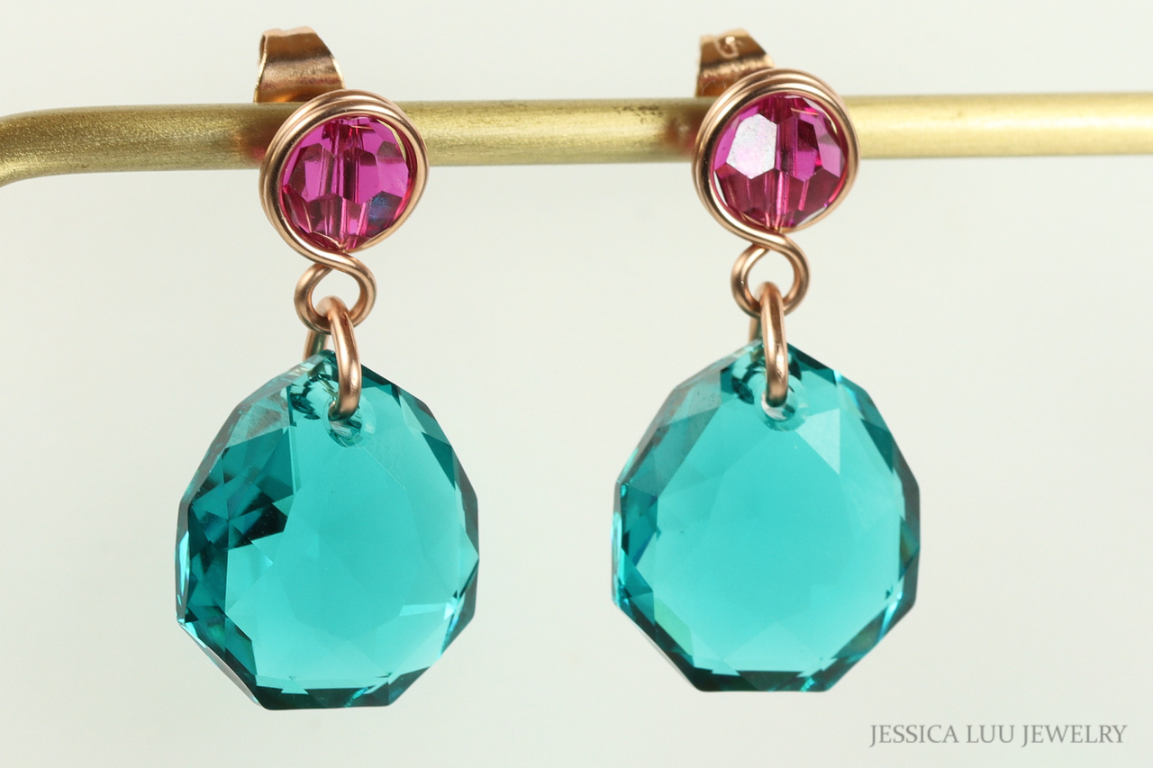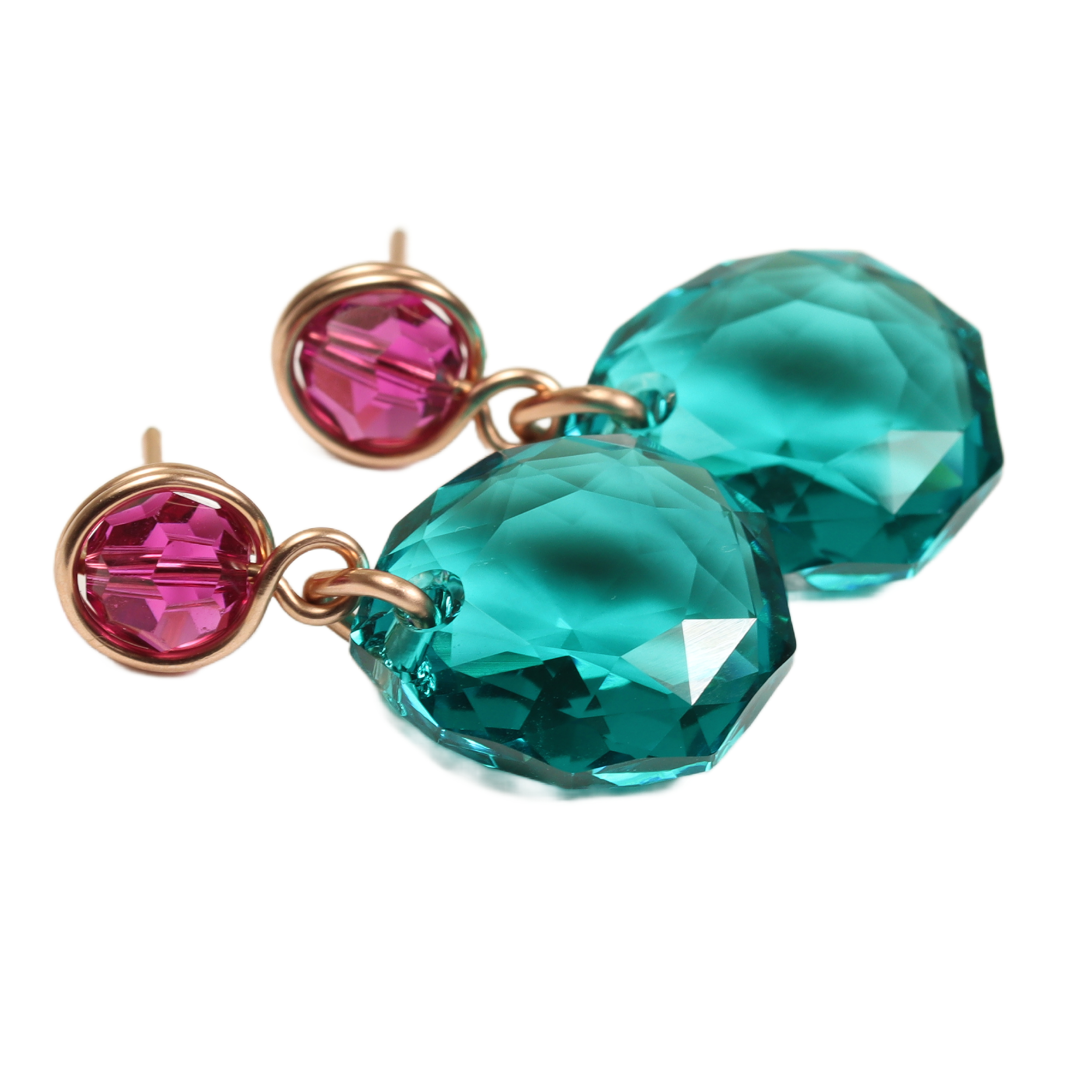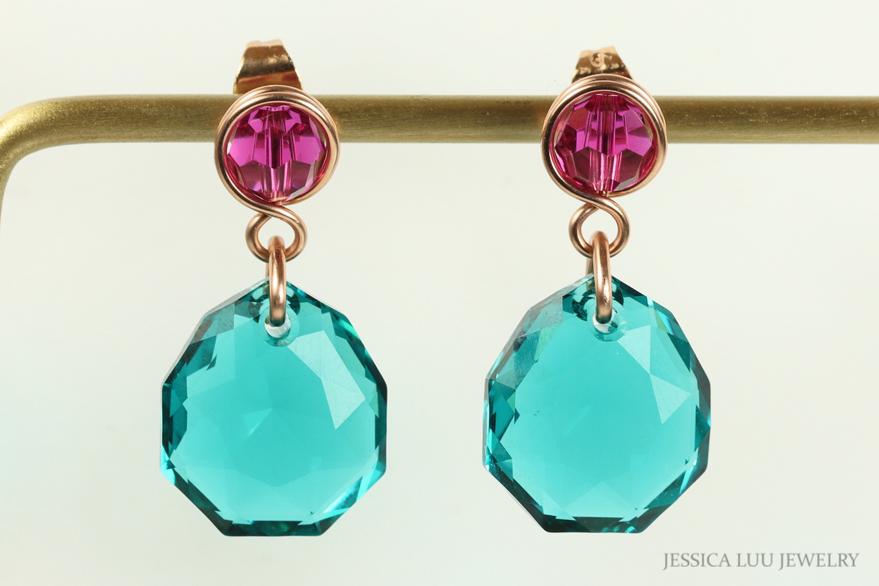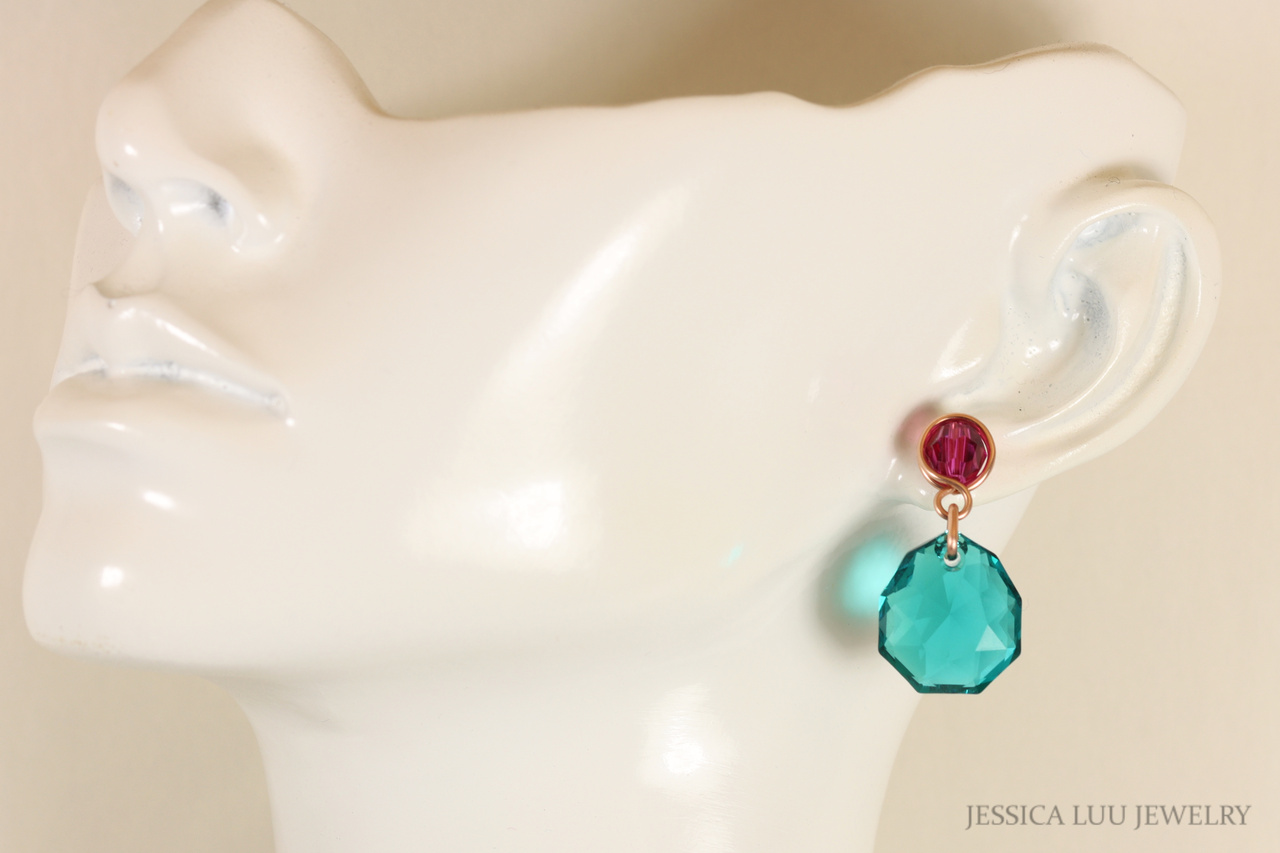 Teal and Fuchsia Dangle Earrings Handmade by Jessica Luu Jewelry