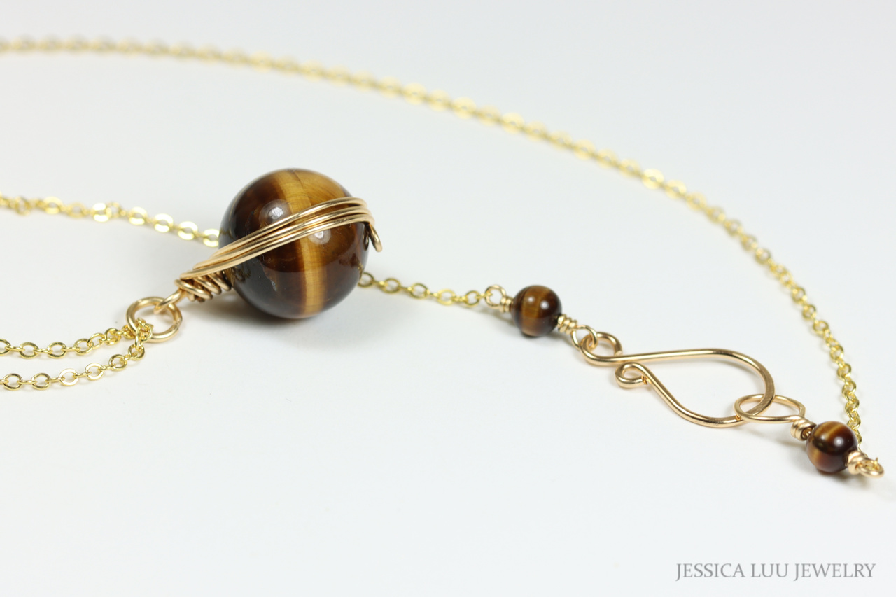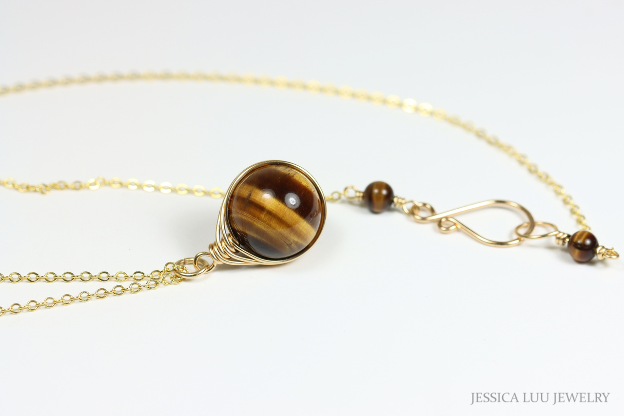 Gold Tiger's Eye Gemstone Pendant Necklace Handmade by Jessica Luu Jewelry