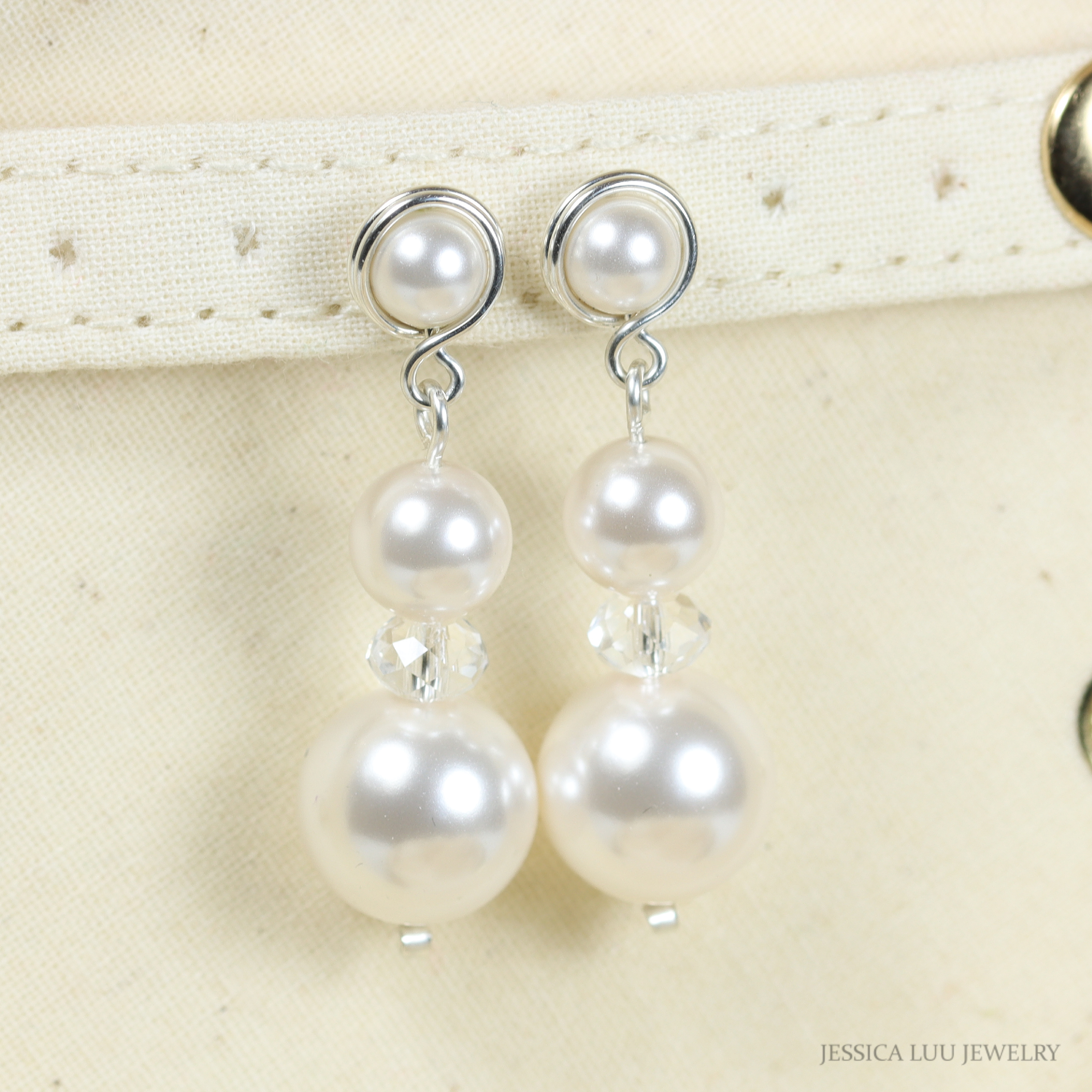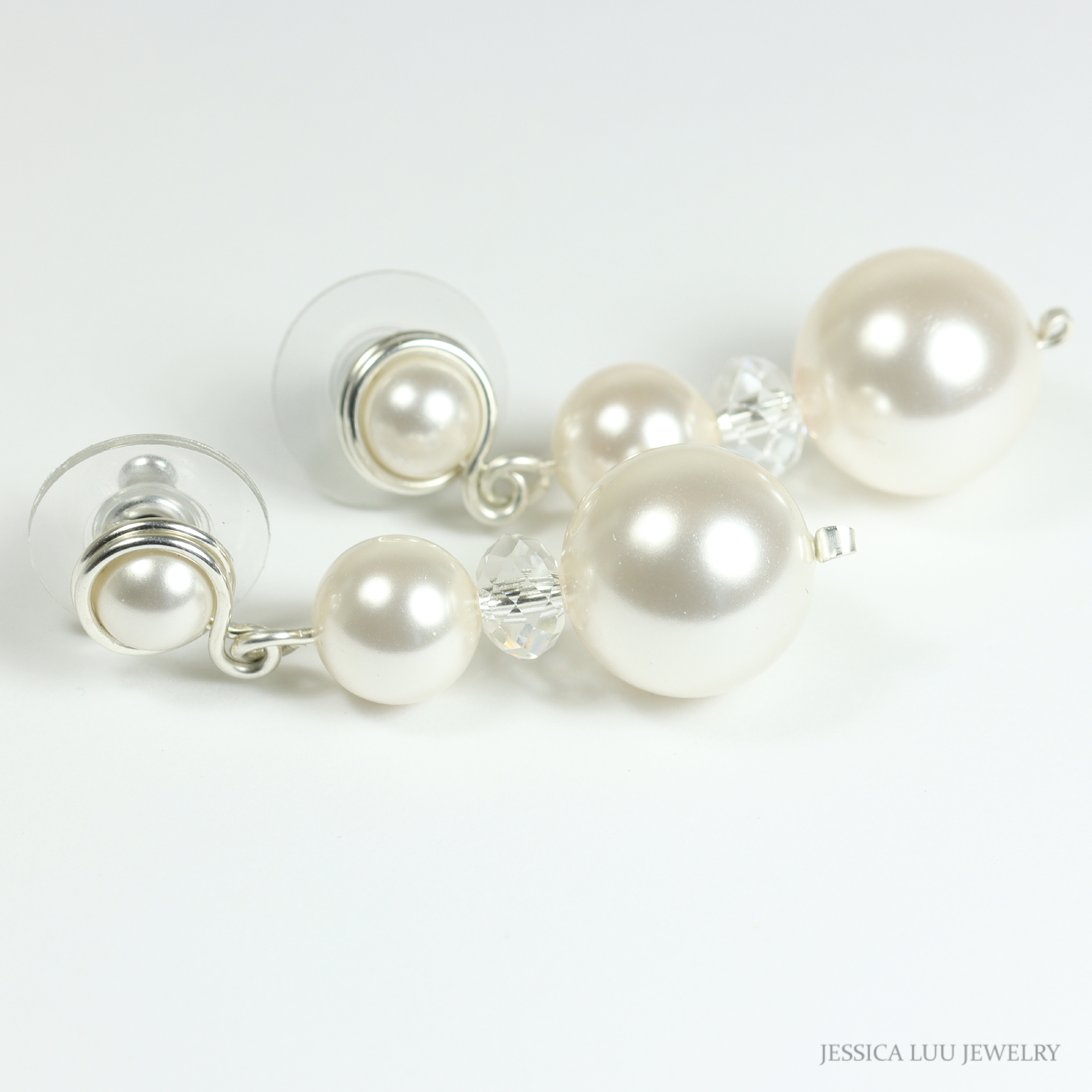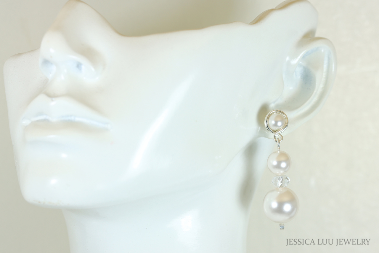 Sterling Silver White Pearl Earrings Handmade by Jessica Luu Jewelry